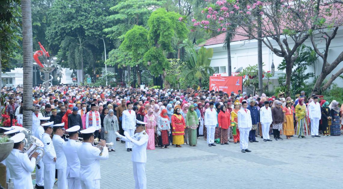 Persatuan dan kerja sama juga menjadi fondasi bagi pasukan pengibar bendera dalam melaksanakan tugasnya pada Upacara Bendera Peringatan HUT Ke-79 Kemerdekaan RI di lingkungan BPOM. Upacara yang dilaksanakan di lapangan Bhinneka Tunggal Ika pada Sabtu (17/8/2024) ini diikuti oleh seluruh jajaran BPOM dan dipimpin oleh Pelaksana Tugas (Plt) Kepala BPOM RI L. Rizka Andalusia yang bertindak sebagai Inspektur Upacara. Di hadapan peserta upacara yang menggunakan beragam pakaian daerah Indonesia, Pasukan 17 dan Pasukan 8 Pengibar Bendera yang berasal dari berbagai unit kerja menampilkan kekompakan dan kesolidan hasil latihan selama 1 bulan.