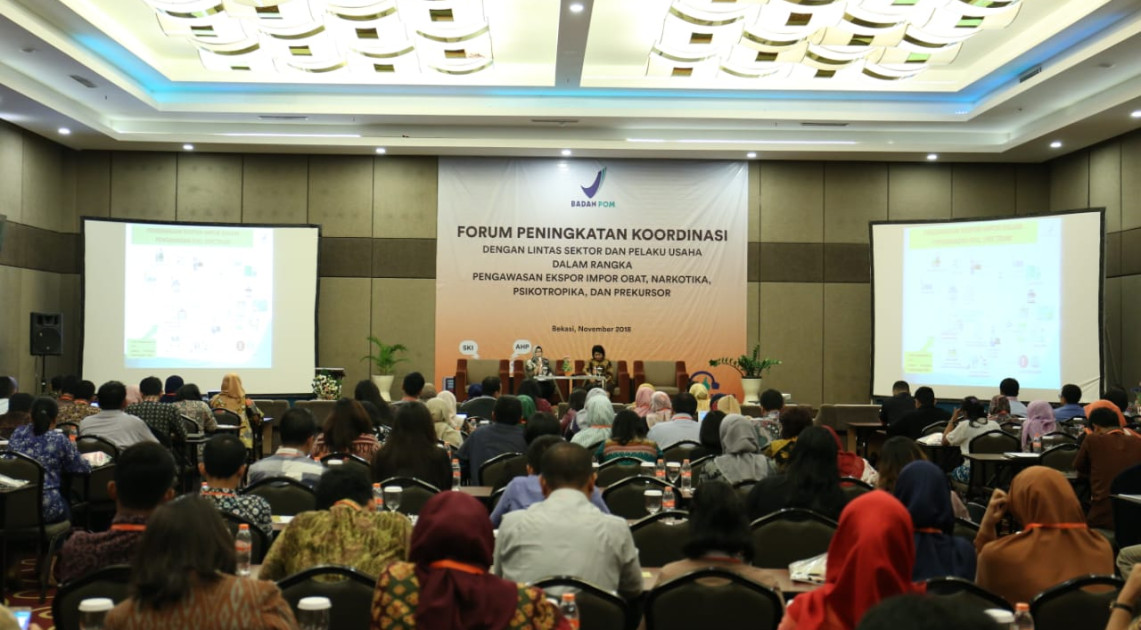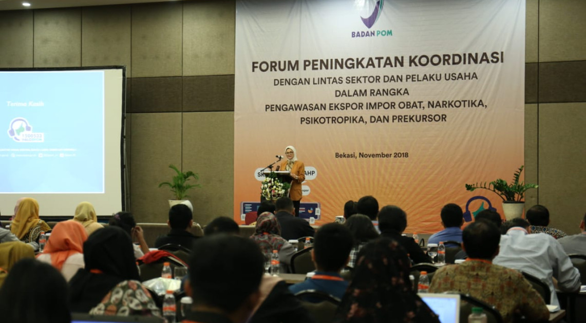 Bekasi - BPOM selalu berupaya melakukan pengawasan efektif untuk melindungi masyarakat dari obat dan makanan yang tidak memenuhi persyaratan keamanan, khasiat, dan mutu, termasuk didalamnya pengawasan pemasukan obat dan bahan obat, serta ekspor dan impor narkotika, psikotropika, dan prekursor. Dalam pengawasan full spectrum, BPOM tidak bergerak sendiri, melainkan didukung oleh lintas sektor terkait dan pelaku usaha. Untuk terus bersinergi dengan baik dalam meningkatkan pelayanan, BPOM menyelenggarakan forum peningkatan koordinasi dengan mengundang berbagai pihak termasuk pelaku usaha. Diselenggarakan di Hotel Aston Bekasi Kamis (15/11), forum ini dihadiri oleh sekitar 185 orang peserta.