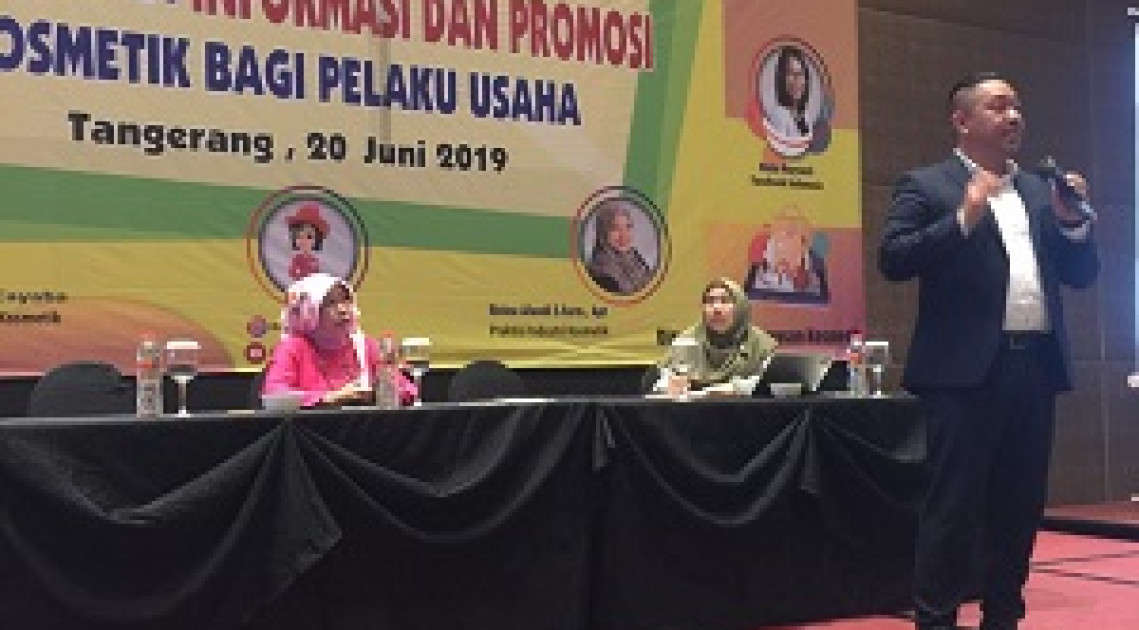 Tangerang – Kosmetik merupakan komoditi yang digunakan dari segala usia Informasi mengenai kosmetik, terutama kegunaan dan cara penggunaan, diketahui konsumen melalui label/kemasan (informasi) dan iklan (promosi) produk. Untuk itu penting dilakukan pengawasan agar label/kemasan dan iklan kosmetik objektif dan tidak menyesatkan. Berbeda dengan komoditi obat, obat tradisional, suplemen kesehatan dan pangan olahan, pada komoditi kosmetik tidak dilakukan evaluasi pre-market terhadap label/kemasan dan iklan kosmetik. Pengawasan label/kemasan dan iklan dilakukan secara post-market. Hal ini menyebabkan banyaknya label/kemasan dan iklan kosmetik yang beredar di pasaran tidak sesuai peraturan. Berdasarkan hasil pengawasan label/kemasan dan iklan kosmetik di peredaran, masih banyak ditemukan pelanggaran oleh pelaku usaha di wilayah Jabodetabek dan sekitarnya. Dilatarbelakangi hal tersebut, Badan POM menyelenggarakan kegiatan Bimbingan Teknis Persyaratan Penandaan dan Promosi Kosmetik bagi Pelaku Usaha yang dilaksanakan selama 2 (dua) hari pada tanggal 20 – 21 Juni 2019 di Tangerang. Kegiatan pada hari pertama merupakan pemaparan materi serta hari kedua dilakukan desk tindak lanjut hasil pengawasan label/kemasan dan iklan kosmetik.