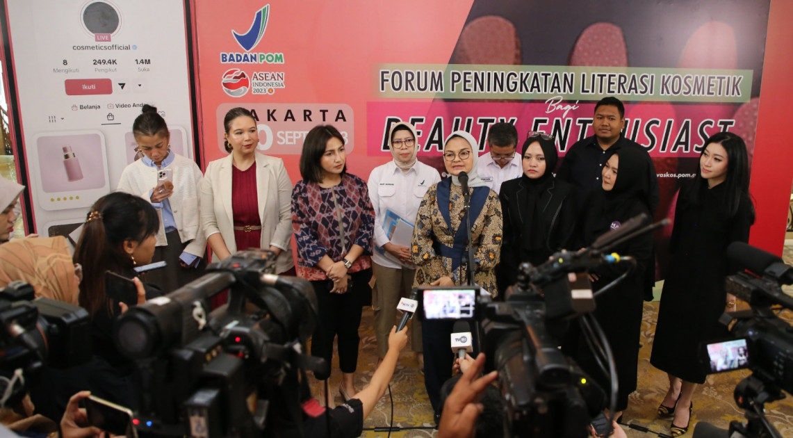 Jakarta – BPOM menyelenggarakan “Forum Peningkatan Literasi Kosmetik Aman” bagi para beauty enthusiast di Jakarta, Rabu (21/09/2023). Kegiatan ini diselenggarakan dalam rangka memberikan edukasi kepada 100 orang beauty enthusiast karena mereka dapat memengaruhi keputusan konsumen dalam memilih dan membeli kosmetik. Kegiatan ini juga dihadiri oleh kementerian/lembaga terkait, beberapa asosiasi, dan komunitas.