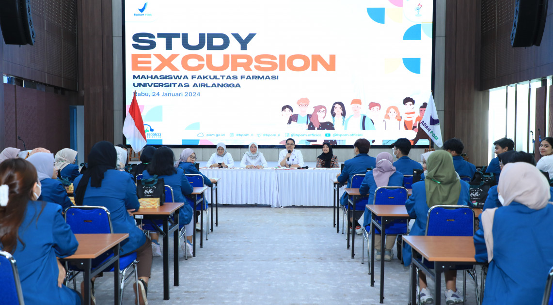 Jakarta – Program studi farmasi memiliki peran penting dalam tugas pengawasan obat dan makanan. Untuk mempersiapkan kecakapan tersebut, mahasiswa Farmasi Universitas Airlangga (UNAIR) melakukan study excursion ke BPOM pada Rabu (25/01/2023). Dalam kegiatan tersebut, sebanyak 50 mahasiswa Fakultas Farmasi UNAIR hadir di Auditorium Gedung Merah Putih BPOM.