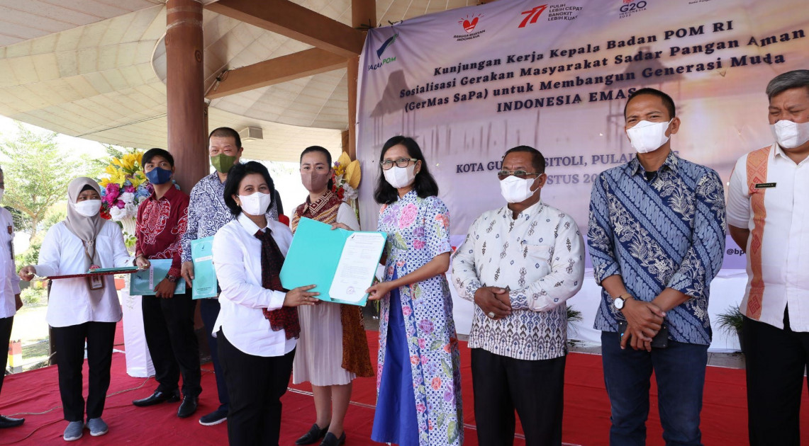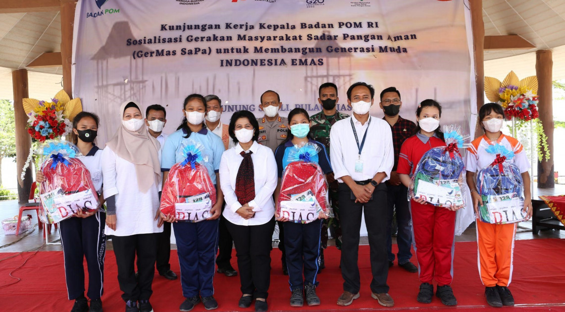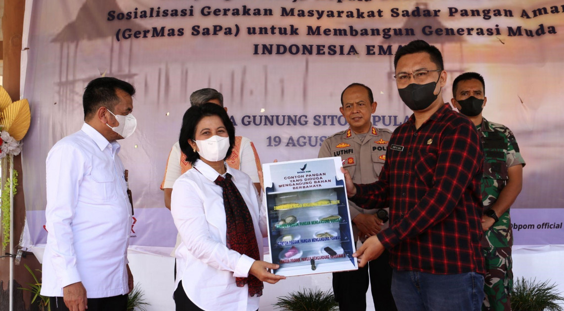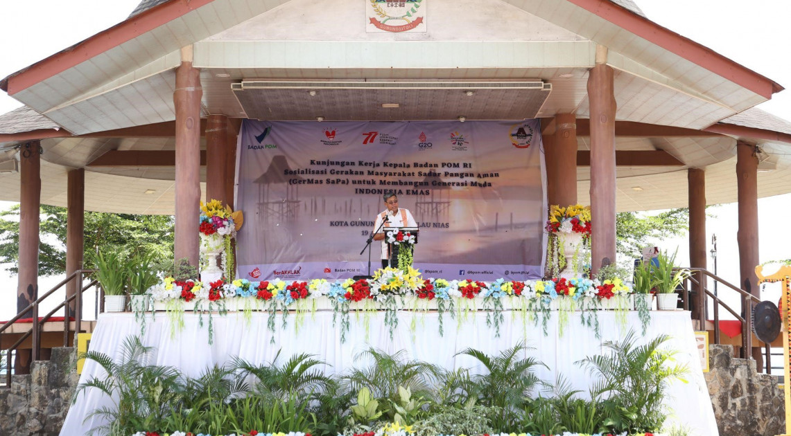 Nias - BPOM menggelar rangkaian edukasi pangan aman di Pulau Nias, Jumat (19/08/2022). Deputi Bidang Pengawasan Pangan Olahan BPOM, Rita Endang menekankan dalam sambutannya bahwa suatu wilayah yang aman ditentukan juga oleh produk makanan yang aman. Untuk itu, BPOM mengajak masyarakat Gunungsitoli, Pulau Nias menerapkan Gerakan Masyarakat Hidup Sehat Sadar Pangan Aman (GERMAS SAPA).
