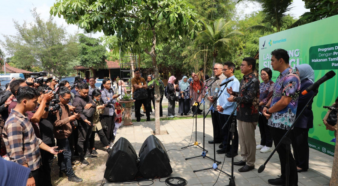 Yogyakarta – Kepala BPOM RI Taruna Ikrar dan Menteri Kesehatan RI Budi Gunadi Sadikin meluncurkan Sinergi Program Desa Pangan Aman (PDPA) dan Program Pemberian Makanan Tambahan Berbahan Pangan Lokal (PMTBPL) di Kampoeng Mataraman, Kalurahan Pangungharjo, Kapanewon Sewon, Bantul pada Senin (14/10/2024). Sinergi program ini bertujuan memanfaatkan bahan pangan lokal yang berbasis di desa untuk pemberian makanan tambahan. Nantinya program ini menyasar ibu hamil dan balita yang memerlukan perbaikan gizi.
