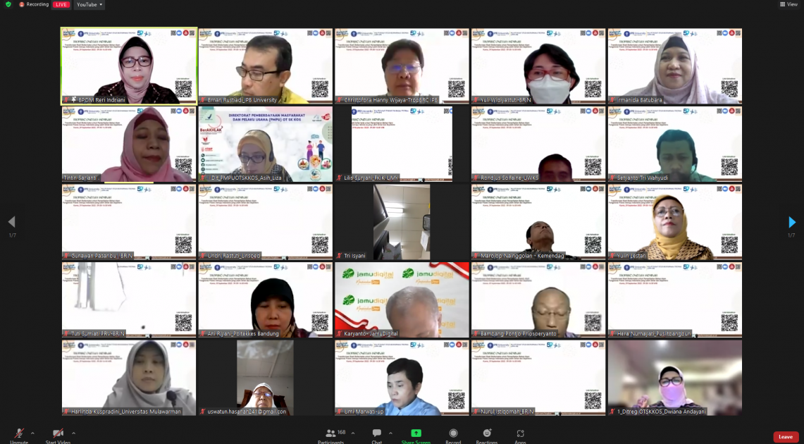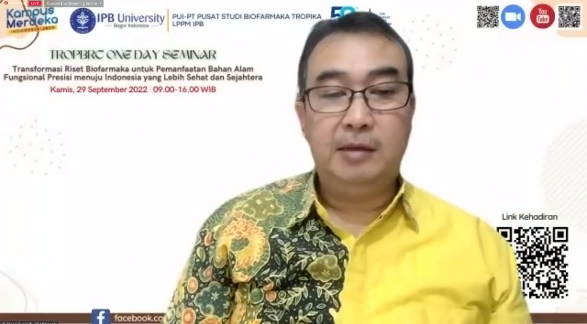 Jakarta - BPOM berpartisipasi pada Seminar “Transformasi Riset Biofarmaka untuk Pemanfaatan Bahan Alam Fungsional Presisi Menuju Indonesia yang Lebih Sehat dan Sejahtera”, Kamis (29/09/2022). Kegiatan ini diselenggarakan oleh Pusat Studi Biofarmaka Tropika (Trop BRC), Lembaga Penelitian dan Pengabdian Masyarakat Institut Pertanian Bogor (LPPM IPB) secara daring. Kegiatan bertajuk One Day Seminar ini dibuka secara resmi oleh Rektor Institut Pertanian Bogor, Arif Satria.