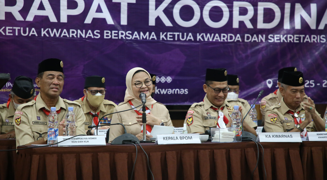 Jakarta – BPOM RI bersama Kwartir Nasional (Kwarnas) Gerakan Pramuka menandatangani nota kesepahaman atau Memorandum of Understanding (MoU) tentang Pemberdayaan Gerakan Pramuka di Bidang Keamanan serta Mutu Obat dan Makanan, Jumat (25/11/2022). Penandatanganan ini dilakukan oleh Kepala BPOM RI, Penny K. Lukito bersama Ketua Kwarnas Gerakan Pramuka, Budi Waseso. MoU ini merupakan pembaruan kerja sama yang sebelumnya telah berakhir pada Februari 2022.
