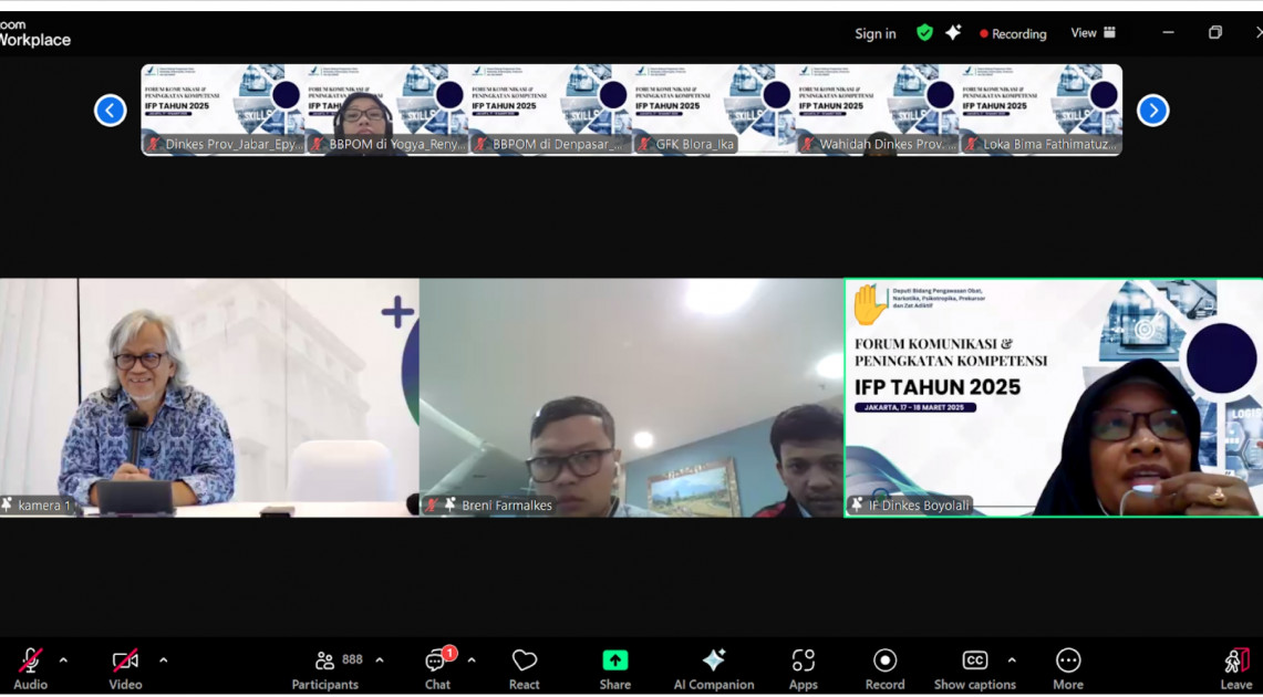 Forum Komunikasi dan Peningkatan Kompetensi Bagi Instalasi Farmasi Pemerintah diselenggarakan selama 2 hari, yaitu Senin-Selasa, 17–18 Maret 2025 dan diikuti oleh perwakilan IFP provinsi/kabupaten/kota seluruh Indonesia, perwakilan dinas kesehatan provinsi/kabupaten/kota seluruh Indonesia, perwakilan unit pelaksana teknis (UPT) BPOM di seluruh Indonesia, serta pengawas farmasi dan makanan ahli utama BPOM. Selain Deputi 1 BPOM, forum ini menghadirkan beberapa narasumber lain dengan beberapa topik paparan. Narasumber yang hadir, yaitu Kementerian Kesehatan dengan paparan tentang hasil penilaian IFP/fasilitas pengelolaan kefarmasian sesuai standar; Direktur Pengawasan Distribusi dan Pelayanan Obat, Narkotika, Psikotropika, dan Prekursor BPOM yang membahas tentang evaluasi hasil pengawasan IFP Tahun 2024 oleh BPOM; serta paparan tentang validasi pengiriman cold chain product (CCP) oleh PT Biofarma.