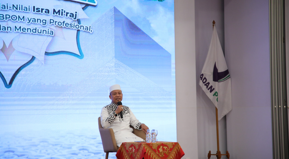 Jakarta – BPOM menyelenggarakan kajian Islam dalam rangka memperingati Isra Mi'raj pada Senin (3/2/2025). Kajian mengangkat tema “Transformasi Nilai-Nilai Isra Mi'raj untuk Membangun BPOM yang Profesional, Amanah, dan Mendunia”. Kegiatan ini berlangsung secara hybrid, menggabungkan kehadiran langsung di kantor BPOM serta partisipasi daring dari berbagai daerah.