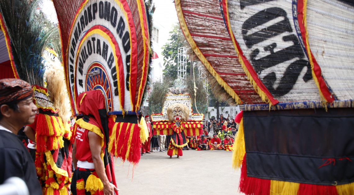 Jakarta - BPOM berpartisipasi dalam kegiatan Pawai Budaya Reog Ponorogo dalam rangka pengusulan Reog Ponorogo menjadi warisan budaya tak benda (WBTB) UNESCO, Minggu (27/08/2023). BPOM semarakkan kegiatan pawai budaya dengan ikut menghadirkan 50 orang peserta dari komunitas jamu gendong binaan BPOM. Kegiatan pawai ini diinisiasi oleh Kementerian Koordinator Bidang Pembangunan Manusia dan Kebudayaan (Kemenko PMK).