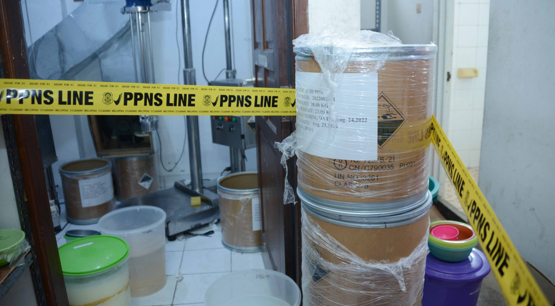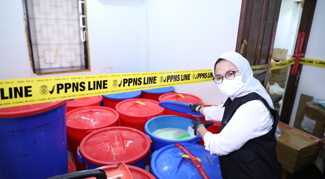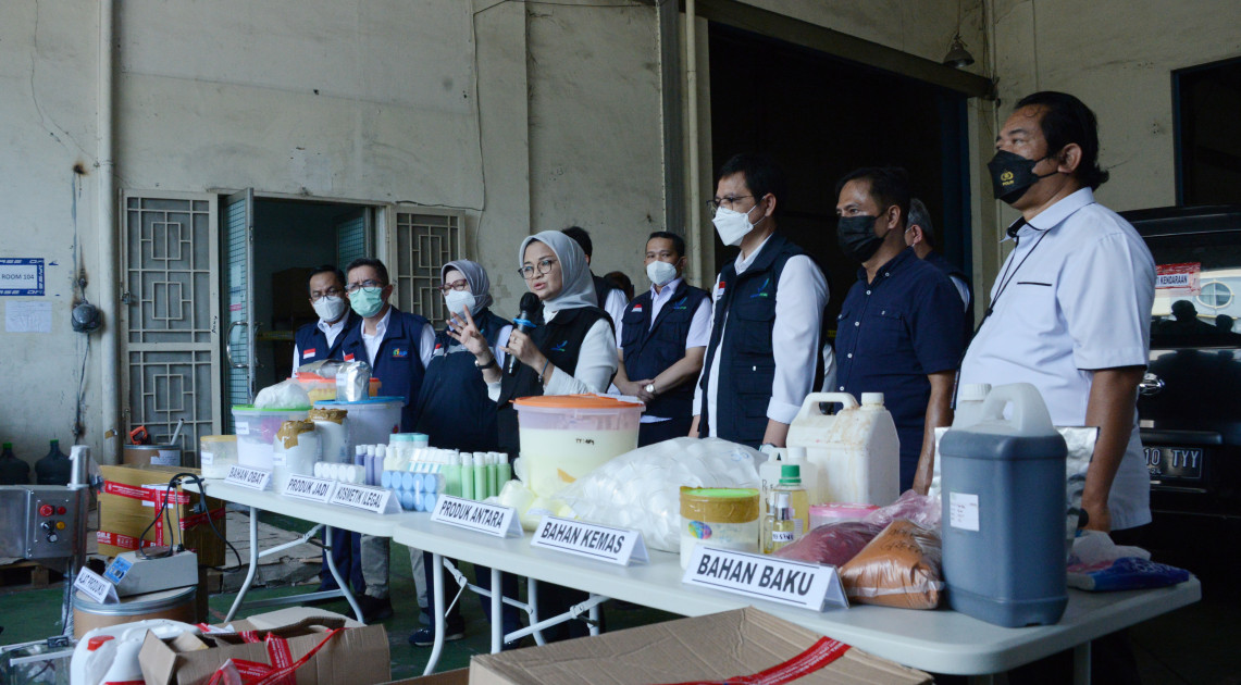 Jakarta — BPOM sebagai otoritas regulatori obat dan makanan secara proaktif melakukan pengawasan keamanan, mutu, dan khasiat/manfaat obat dan makanan, termasuk kosmetika. Langkah proaktif BPOM salah satunya dengan menindak pabrik kosmetika yang melakukan proses produksi secara ilegal. Seperti yang dilakukan pada Kamis (09/03/2023), BPOM kembali melakukan penindakan pabrik Kosmetik ilegal di wilayah Jakarta Utara yang diduga memproduksi kosmetika Tanpa Izin Edar (TIE) dan mengandung bahan yang dilarang dalam kosmetika.
