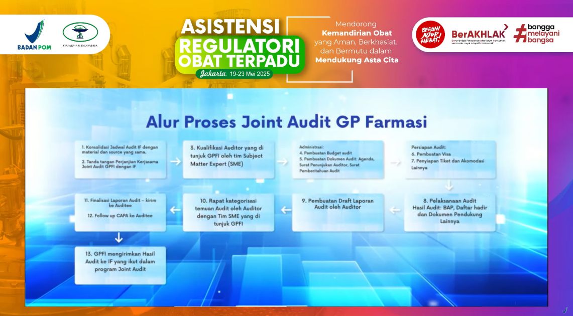 Melalui kolaborasi lintas sektor, BPOM percaya bahwa ketiga tantangan tersebut dapat diatasi secara bertahap dan terstruktur. Salah satu bentuk nyata dari kolaborasi ini adalah peluncuran program Joint Audit Pemasok, yang merupakan inisiatif bersama BPOM dan Gabungan Perusahaan Farmasi Indonesia (GPFI). Program ini memungkinkan industri farmasi dan pedagang besar farmasi (PBF) melakukan audit secara kolektif terhadap pemasok bahan baku, yang hasilnya kemudian diverifikasi oleh BPOM. Dengan cara ini, proses audit menjadi lebih efisien dan efektif, sekaligus menjamin mutu bahan baku sesuai standar dan regulasi terkini.