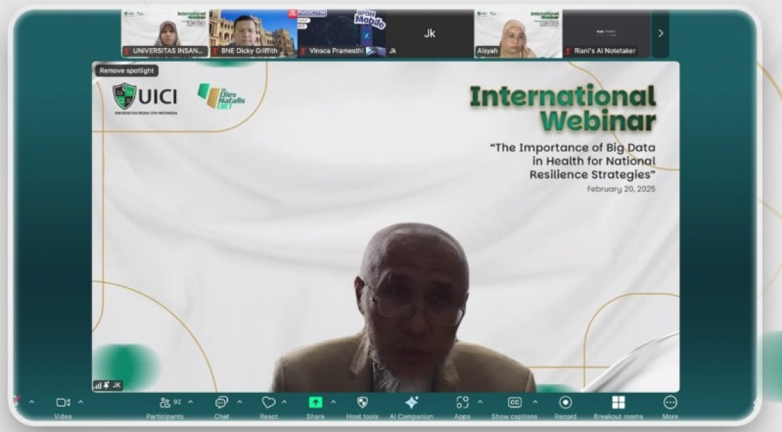 Wakil Rektor UICI Bidang Research & Development dan Digital Advancement Prof. Jaswar Koto turut menjelaskan peran International Classification of Diseases (ICD) dalam dunia medis. "ICD memberikan bahasa yang seragam dalam pencatatan data kesehatan global, tetapi penggunaannya masih memiliki tantangan besar karena kompleksitas kode yang harus dikelola secara manual," ungkapnya. Untuk itu, ia menilai bahwa kecerdasan buatan, termasuk generative artificial intelligence (Gen-AI), dapat membantu meningkatkan akurasi diagnosis medis.