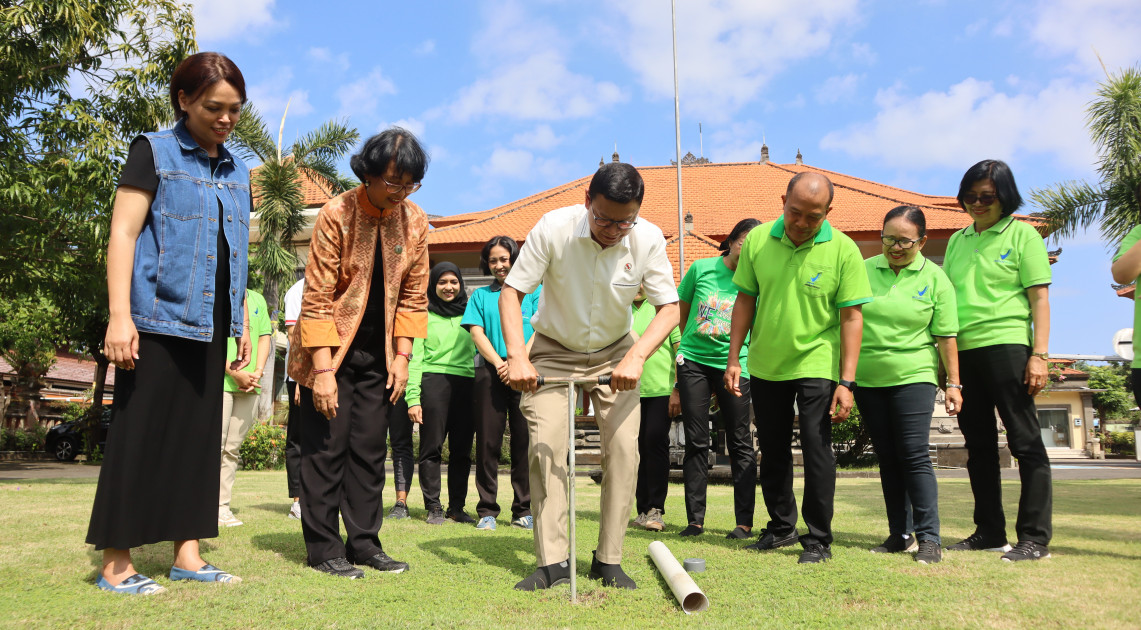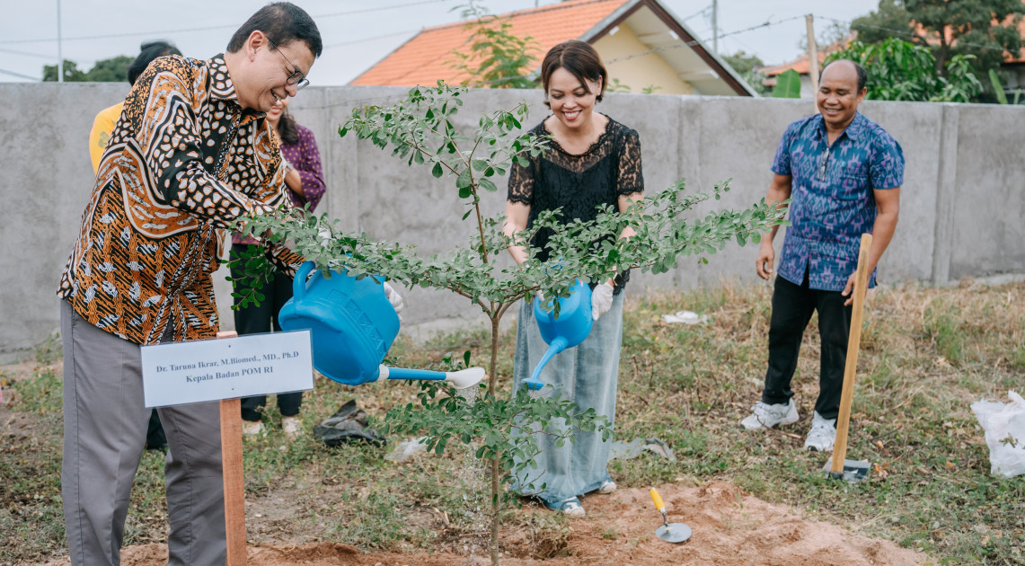 Masih dalam rangkaian kunjungan kerja, Kepala BPOM juga menghadiri kegiatan “BPOM Go Green: Tanam Pohon dan Lestarikan Jamu untuk Indonesia Sehat” di Balai Besar POM (BBPOM) di Denpasar. Taruna Ikrar kembali melakukan penanaman pohon, kali ini pohon jeruk Bali, tanaman khas yang sarat nilai simbolis, serta membuat biopori atau teba modern. Biopori ini difungsikan untuk menampung sampah organik dengan pemanfaatan area sekitar lapangan BBPOM di Denpasar. Taruna Ikrar mengapresiasi upaya ini untuk dapat diikuti oleh UPT BPOM lainnya di seluruh Indonesia sebagai bentuk nyata komitmen terhadap pelestarian lingkungan.