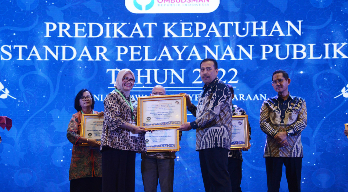 Penilaian Predikat Kepatuhan Standar Pelayanan Publik Tahun 2022 dilakukan oleh Ombudsman pada 587 instansi, dengan rincian 25 kementerian, 14 lembaga, 34 pemerintahan provinsi, 98 pemerintahan kota, dan 415 pemerintahan kabupaten. Dalam penilaian ini, BPOM menjadi yang terbaik pada kategori tingkat Lembaga Pemerintah.
