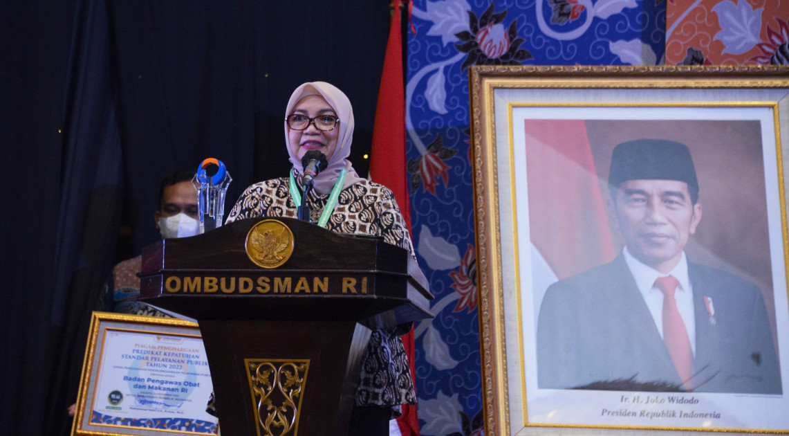 Jakarta - BPOM mendapatkan penghargaan dari Ombudsman RI sebagai Peringkat Pertama Predikat Kepatuhan Standar Pelayanan Publik Tahun 2022 Tingkat Lembaga Pemerintah. Penghargaan diberikan langsung oleh Ketua Ombudsman Republik Indonesia, Mokhammad Najih kepada Sekretaris Utama BPOM, Rita Mahyona, Kamis (22/12/2022). Kepala BPOM RI, Penny K. Lukito hadir secara daring dan menyaksikan prosesi penyerahan penghargaan ini.