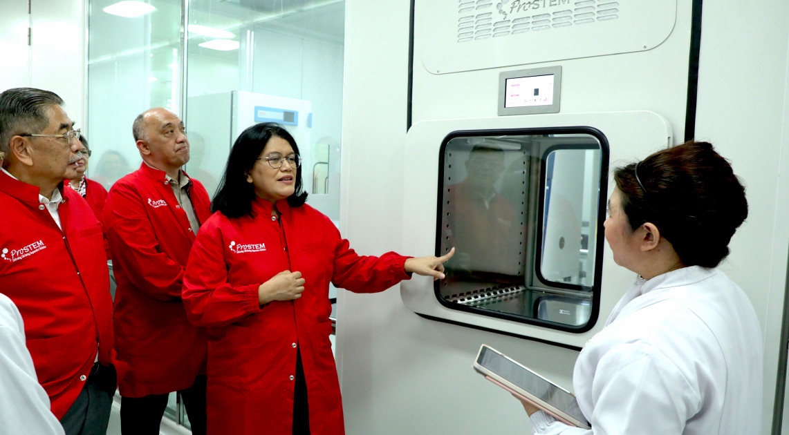 Jakarta - Plt. Kepala BPOM RI, L. Rizka Andalusia meresmikan Gedung Advanced Cell Therapy-Production Laboratory (ACT-PLab) Tahap I pada hari Senin (11/12/2023). Bertempat di bilangan Kramat, Jakarta Pusat, ACT-PLab menjadi laboratorium pertama yang digunakan untuk proses pengolahan sel punca, sel, dan turunannya yang dikelola oleh PT Prodia StemCell Indonesia (ProSTEM).