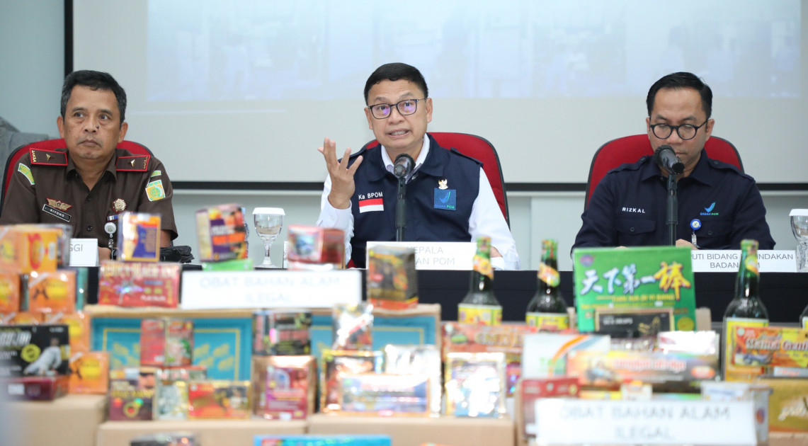 Bandung – BPOM mengamankan produk obat bahan alam ilegal atau tanpa izin edar (TIE) dan diduga mengandung bahan kimia obat (BKO) dengan nilai ekonomi barang bukti mencapai Rp8,1 miliar. Produk ilegal tersebut tersebar di agen obat bahan alam (OBA) ilegal di wilayah Kota Bandung dan Cimahi.