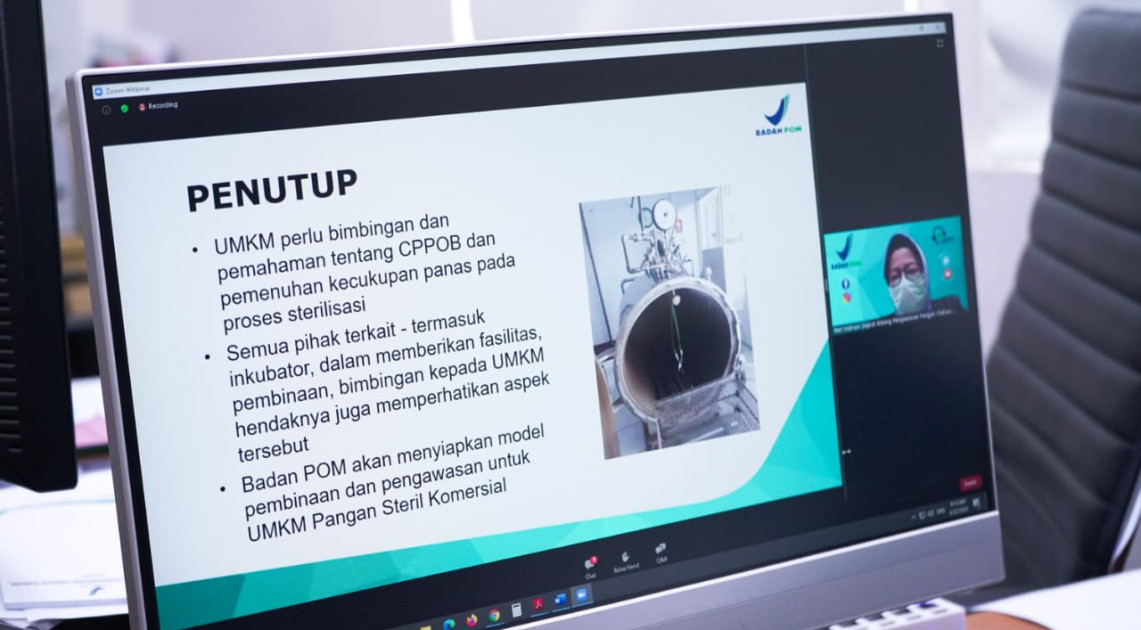 Jakarta - “Pada kondisi pandemi COVID-19 sekarang ini, tren produk pangan steril komersial yang dikembangkan oleh Usaha Mikro, Kecil, dan Menengah (UMKM) memiliki nilai lebih dalam hal penyimpanan karena dapat disimpan pada suhu ruang tanpa memerlukan perlakuan khusus sehingga kerusakan selama penyimpanan dapat diminimalkan.” Demikian disampaikan Deputi Bidang Pengawasan Pangan, Reri Indriani dalam arahannya pada acara Bimbingan Teknis (bimtek) untuk UMKM Pangan, Senin, (22/6).