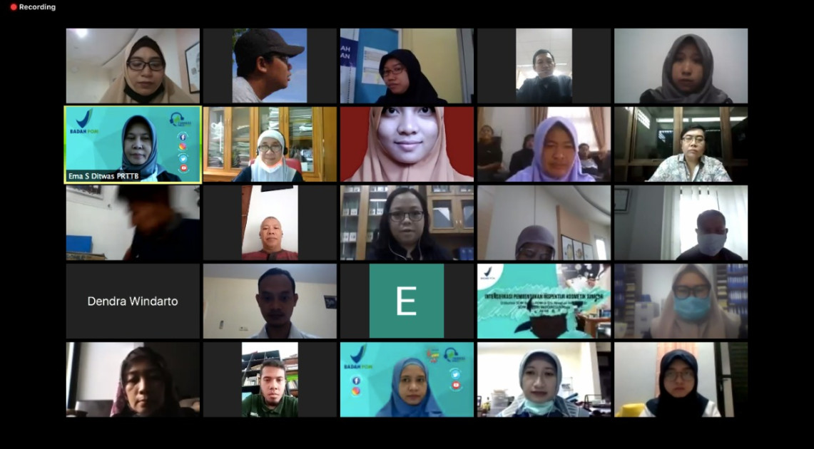 Bimtek yang diselenggarakan secara virtual tersebut dilaksanakan selama 2 hari dan diisi paparan oleh beberapa narasumber antara lain Deputi Bidang Pengawasan Pangan Olahan Badan POM, Direktur Pengawasan Pangan Risiko Tinggi dan Teknologi Baru Badan POM, perwakilan dari Institut Pertanian Bogor (IPB) Dr. Eko Hari Purnomo., MSc, serta perwakilan pelaku usaha Titiek Sudarti.