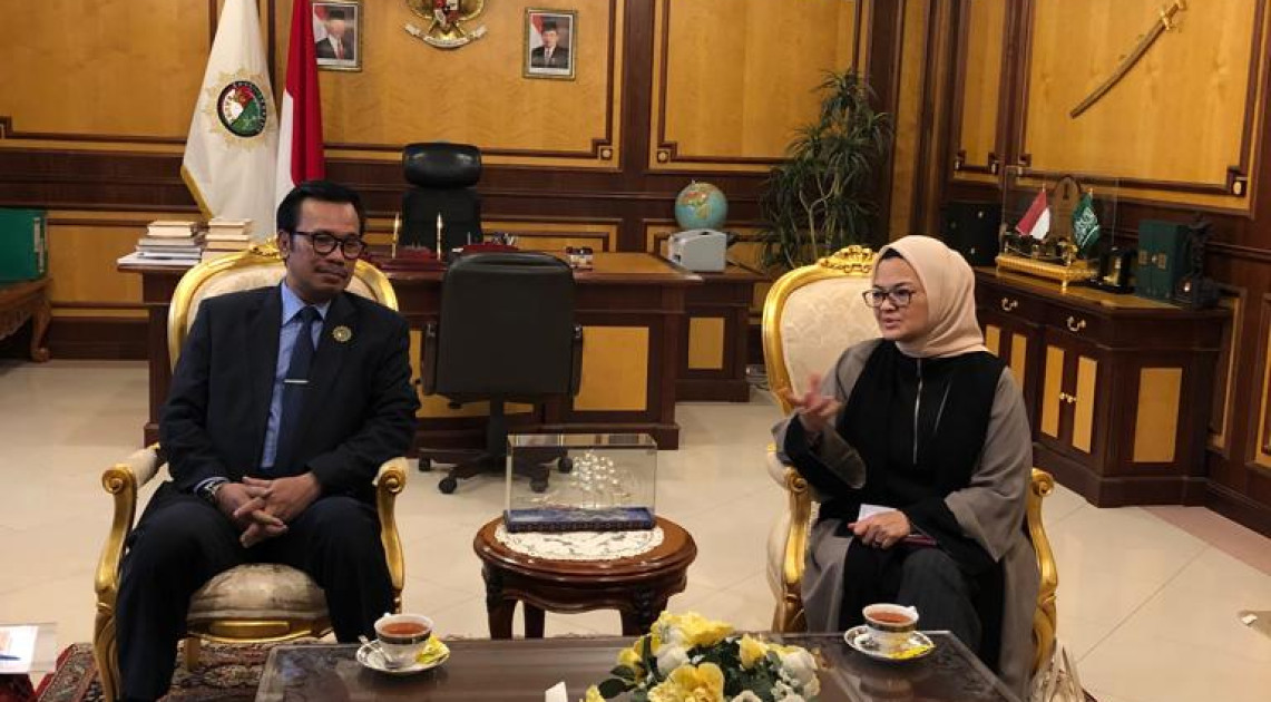 Riyadh – Mengawali kunjungan ke wilayah Timur Tengah akhir September 2019, Kepala Badan POM RI, Penny K. Lukito beserta jajaran melakukan pertemuan kehormatan di Kedutaan Besar Republik Indonesia di Riyadh, Minggu sore (29/09). Kepala Badan POM didampingi Kepala Biro Kerja Sama, Direktur Pengawasan Pangan Risiko Tinggi dan Teknologi Baru, Direktur Standardisasi Obat, Narkotika, Psikotropika, Prekursor dan Zat Adiktif, serta Kepala Balai Besar POM di Surabaya melaksanakan courtesy call dengan Duta Besar Republik Indonesia (Dubes RI) di Riyadh, Agus Maftuh Abegebriel.