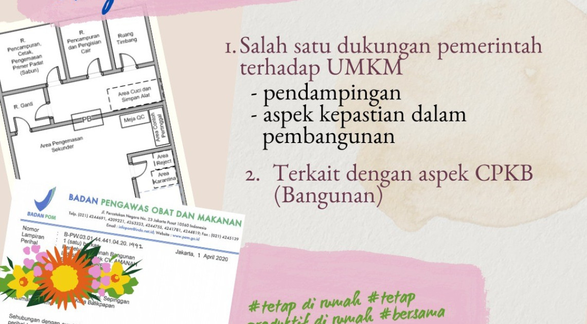 Persetujuan denah bangunan industri kosmetik yang diterbitkan oleh Badan POM merupakan salah satu persyaratan yang diperlukan dalam pengurusan Surat Keterangan Penerapan CPKB yang nantinya akan digunakan untuk memperoleh nomor notifikasi produk.