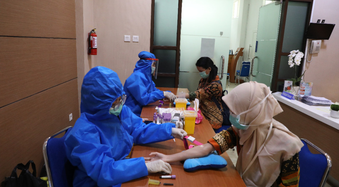 Pemeriksaan rapid test di kalangan pegawai Badan POM ini merupakan langkah awal untuk deteksi kemungkinan adanya infeksi Covid-19. Jenis pemeriksaan yang digunakan adalah rapid test antibodi dimana yang diperiksa adalah antibodi yang ada di dalam darah seseorang jika terinfeksi virus Covid-19. Jika hasilnya negatif maka akan ada pemeriksaan ulang selama 7-10 hari kedepan untuk memastikan pegawai benar-benar negatif. Jika dinyatakan positif maka akan dirujuk ke rumah sakit rujukan untuk melakukan tes swab dengan menggunakan Polymerase chain reaction/PCR. (HM- Devi)