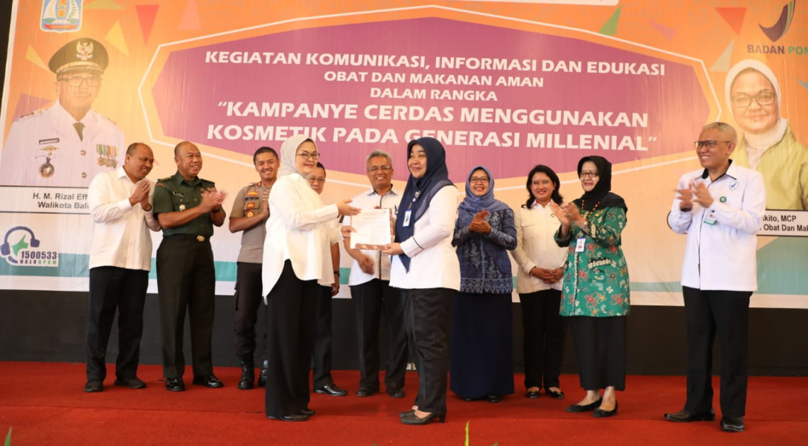 Balikpapan - Melanjutkan rangkaian kunjungan kerja ke Kalimantan, Kepala BPOM RI, Penny K. Lukito menghadiri dan membuka secara resmi Kampanye Cerdas Menggunakan Kosmetik untuk Generasi Milenial di Balikpapan, Kamis (17/01). Turut hadir dalam acara tersebut jajaran Pemerintah Kota Balikpapan dan Pimpinan Organisasi Perangkat Daerah, serta peserta dari beberapa SMA/SMK di kota Balikpapan yang merupakan generasi milenial target dari kampanye tersebut.