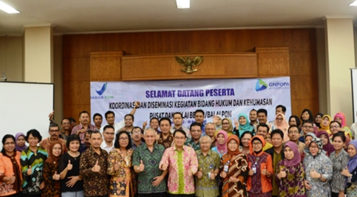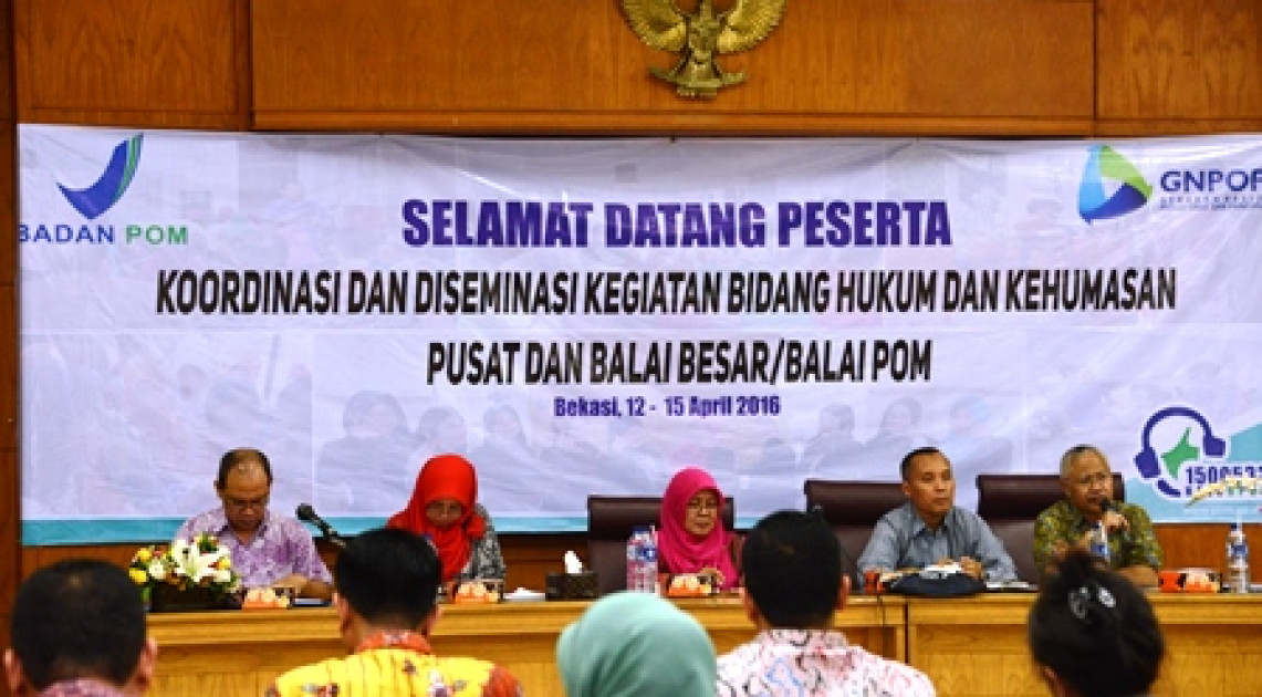 Sebagai upaya perkuatan pengawasan Obat dan Makanan, Badan POM terus menerapkan berbagai strategi pengawasan, salah satunya di bidang hukum dan kehumasan. Untuk itu, Badan POM melalui Biro Hukum dan Humas menyelenggarakan “Koordinasi dan Diseminasi Kegiatan Bidang Hukum dan Kehumasan” di Bekasi, 12-15 April 2016. Agenda tahunan ini dibuka oleh Kepala Badan POM, Roy Sparringa dan dihadiri Kepala Unit Kerja di lingkungan Badan POM, serta Balai Besar/Balai POM (BB/BPOM) di seluruh Indonesia. Pada kesempatan tersebut Kepala Badan POM menyerahkan penghargaan peraih index kepuasaan tertinggi konsumen Tahun 2015 kepada BBPOM di Makasar dan BBPOM di Gorontalo.
