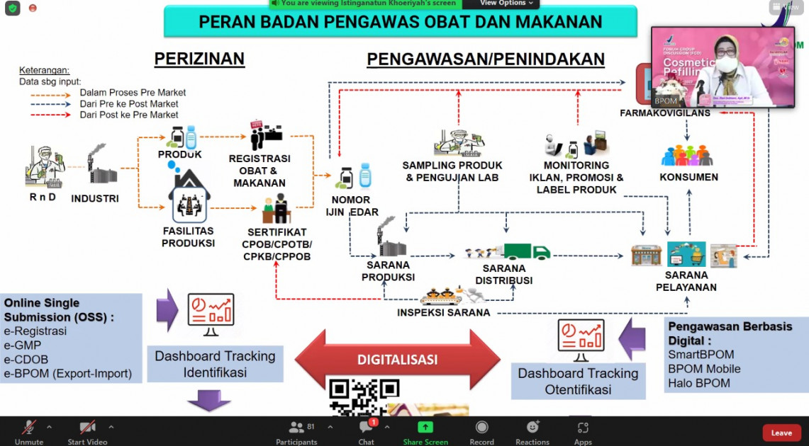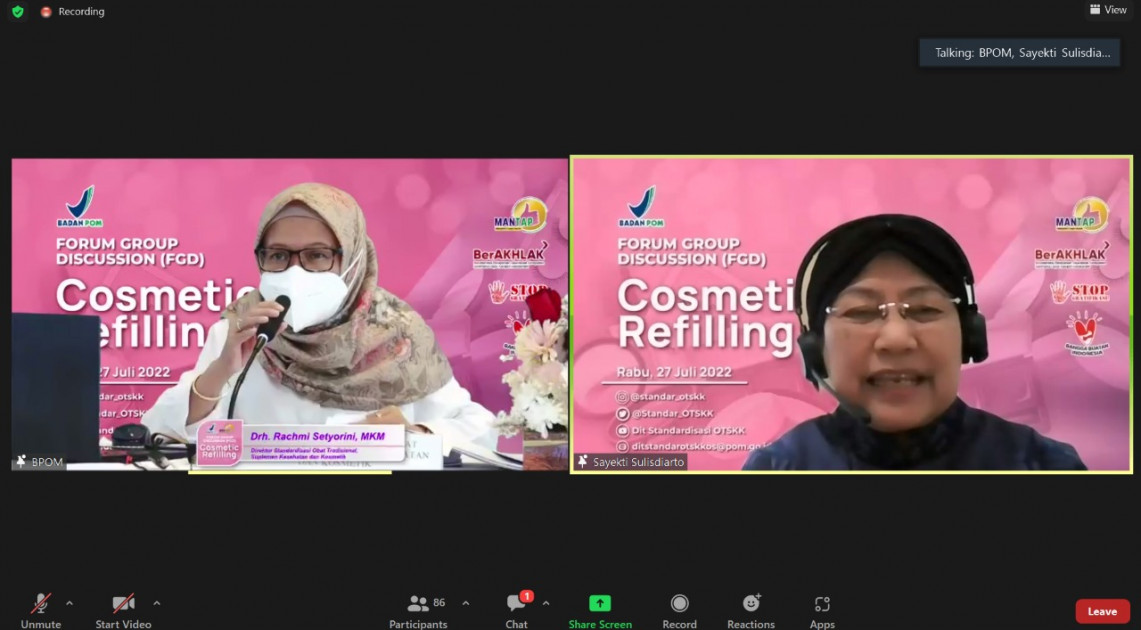 Kegiatan ini dihadiri oleh Deputi Bidang Pengawasan Obat Tradisional, Suplemen Kesehatan dan Kosmetik, Reri Indriani, yang sekaligus menjadi narasumber FGD. Selain itu, turut hadir sebagai narasumber, yaitu Tenaga Ahli Cara Pembuatan Kosmetik yang Baik (CPKB), Sri Sayekti Sulisdiarto; perwakilan dari Kementerian Lingkungan Hidup dan Kehutanan (KLHK), Ujang Solihin Sidik, perwakilan dari Badan Perlindungan Konsumen Nasional (BPKN), Slamet Riyadi; Direktur Pengawasan Kosmetik Badan POM, Arustiyono; Direktur Standardisasi Obat Tradisional, Suplemen Kesehatan, dan Kosmetik, Rachmi Setyorini; serta perwakilan dari Asosiasi Pelaku Usaha, yaitu Persatuan Perusahaan Kosmetik Indonesia (PERKOSMI) dan Perhimpunan Pengusaha dan Asosiasi Kosmetika Indonesia (PPAK). Kegiatan ini diselenggarakan secara hybrid dan diikuti oleh Unit Pusat dan Pelaksana Teknis Badan POM se-Indonesia.