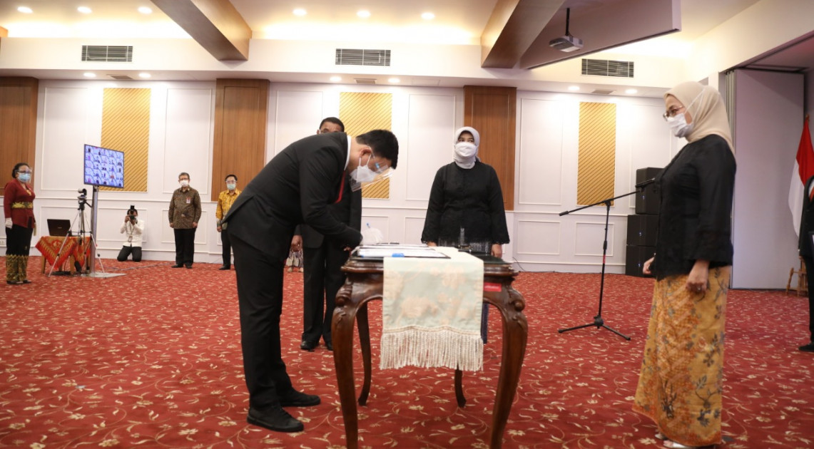 “Penyederhanaan birokrasi juga harus disinergikan dengan perubahan mindset, transformasi digital dan manajemen talenta Aparatur Sipil Negara (ASN)”, tegasnya usai melantik dan mengambil sumpah jabatan pejabat struktural.