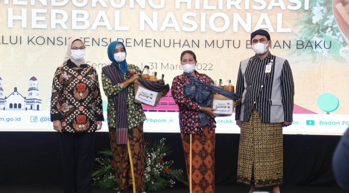 Semarang - Sebagai salah satu bentuk dukungan peningkatan daya saing kepada pelaku Usaha Mikro, Kecil, dan Menengah (UMKM) jamu khususnya di wilayah Jawa Tengah, Badan POM bersinergi dengan Pemerintah Propinsi Jawa Tengah menyelenggarakan kegiatan Pendampingan UMKM Obat Tradisional dalam rangka Mendukung Hilirisasi Herbal Nasional Melalui Konsistensi Pemenuhan Mutu Bahan Baku di Semarang, Selasa (31/03/2022).