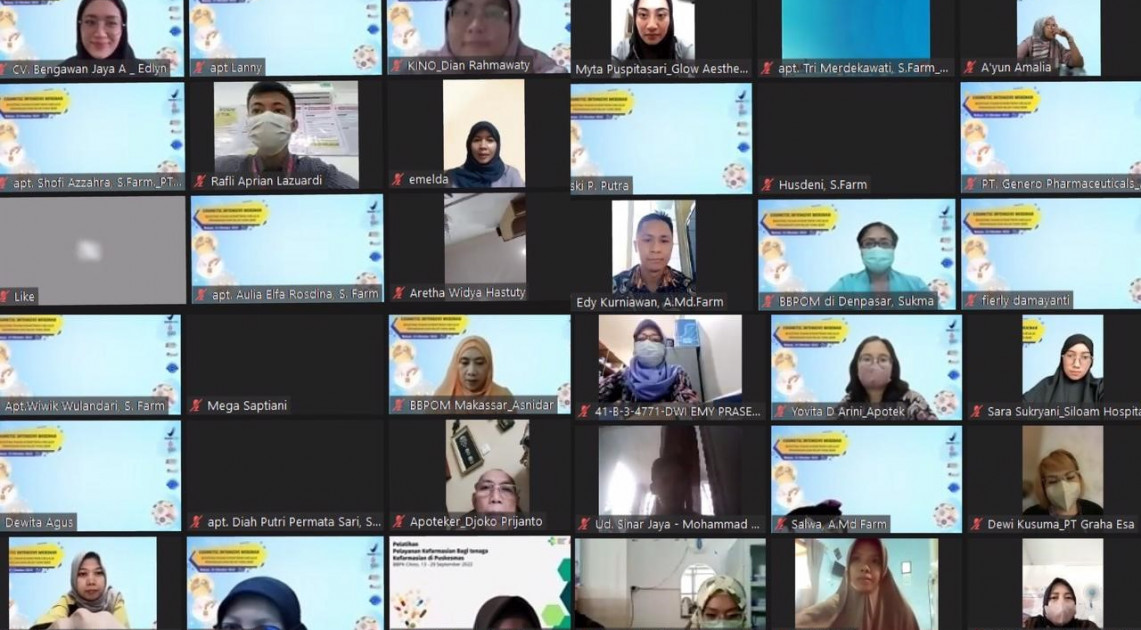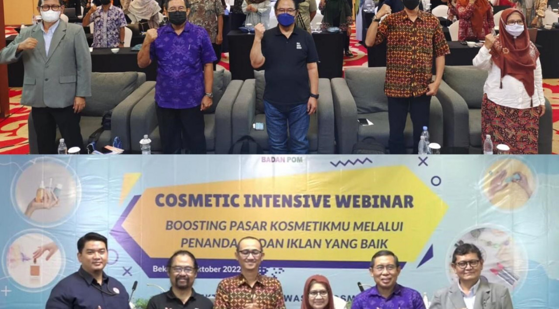 Badan POM turut mendukung pelaku usaha kosmetik untuk meningkatkan daya saing produknya dengan menyelenggarakan kegiatan Cosmetic Intensive Webinar: Boosting Pasar Kosmetikmu Melalui Penandaan dan Iklan yang Baik. Kegiatan webinar ini diselenggarakan tanggal 13 Oktober 2022 di Bekasi, secara hybrid yang dihadiri oleh lebih dari 1.000 peserta dari pelaku usaha dibidang kosmetik dan petugas Badan POM.