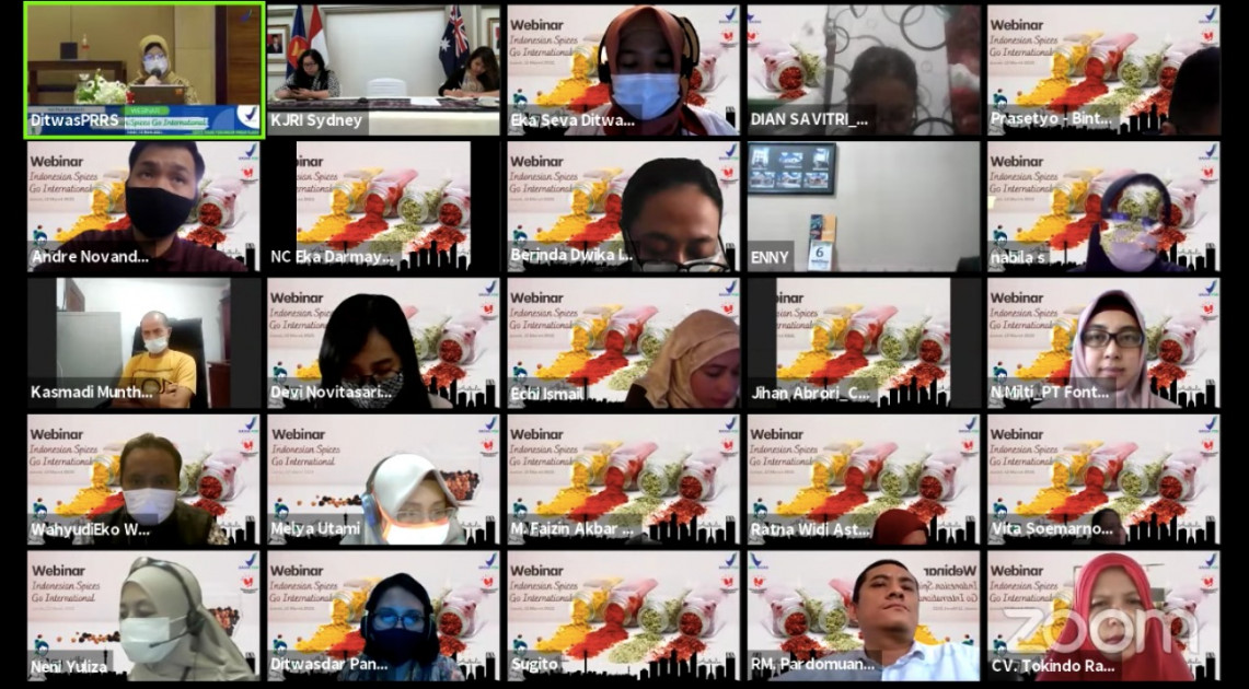Jumat (12/03), Badan POM gelar Webinar Indonesian Spices Go International. Kegiatan ini merupakan bentuk dukungan Badan POM terhadap program Indonesia Spice Up The World, yaitu salah satu Rencana Aksi Strategi Kuliner Indonesia di bawah koordinasi Kementerian Koordinasi Bidang Kemaritiman dan Investasi. Kegiatan yang dipimpin langsung oleh Deputi Pengawasan Pangan Olahan ini dihadiri secara daring oleh perwakilan dari Konsulat Jenderal Republik Indonesia di Sydney, Australia; Asisten Deputi Bidang Pengembangan Ekonomi Kreatif Kementerian Koordinasi Bidang Kemaritiman dan Investasi; Kepala Indonesian Trade Promotion Centre (ITPC) di Johannesburg, Ibu Anggun Paramitha Mahdi; Diaspora Indonesia di Cape Town, Afrika Selatan; Diaspora Indonesia di Perth Australia; dan beberapa pelaku usaha.