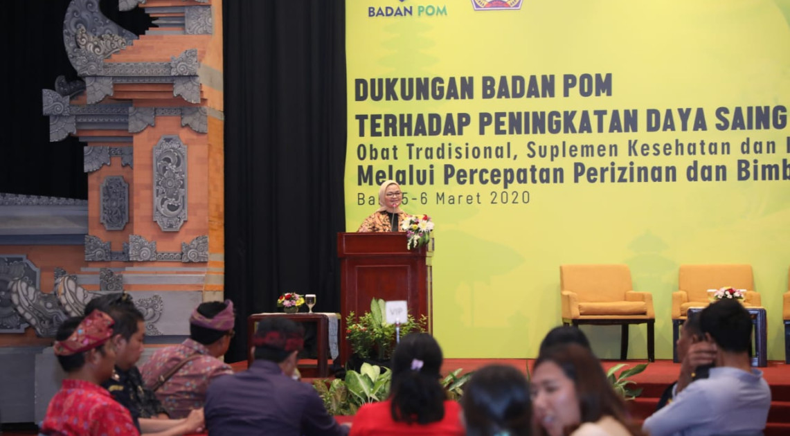 Kuta – Kamis (05/03), Badan POM menyelenggarakan dialog interaktif dengan pelaku Usaha Mikro, Kecil, da Menengah (UMKM) di Provinsi Bali sebagai bentuk dukungan dalam mendorong daya saing produk Bali. Tujuan diselenggarakannya kegiatan ini adalah untuk mengetahui kendala dan permasalahan yang dihadapi UMKM Obat Tradisional, Suplemen Kesehatan, Kosmetik, dan Pangan di Provinsi Bali serta mencari alternatif pemecahannya. Dialog ini dilakukan dengan mendengarkan testimoni pelaku usaha UMKM dan melakukan tanya jawab. Selain itu, Badan POM juga menyelenggarakan bimbingan teknis dengan membuka desk consultation yang dapat dimanfaatkan oleh para pelaku UMKM.
