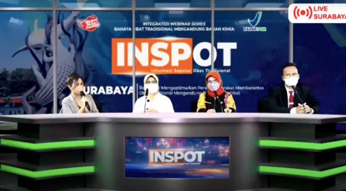 Kegiatan Integrated Webinar Series ini dikemas dengan konsep newsroom dan disiarkan secara langsung dari tiga kota, yaitu Jakarta, Bandung, dan Surabaya. Kegiatan ini diharapkan dapat meningkatkan pengetahuan dan awareness masyarakat serta mendorong peningkatan sinergisme antara pemerintah, pelaku usaha, dan masyarakat dalam penanganan obat tradisional ilegal dan mengandung BKO.