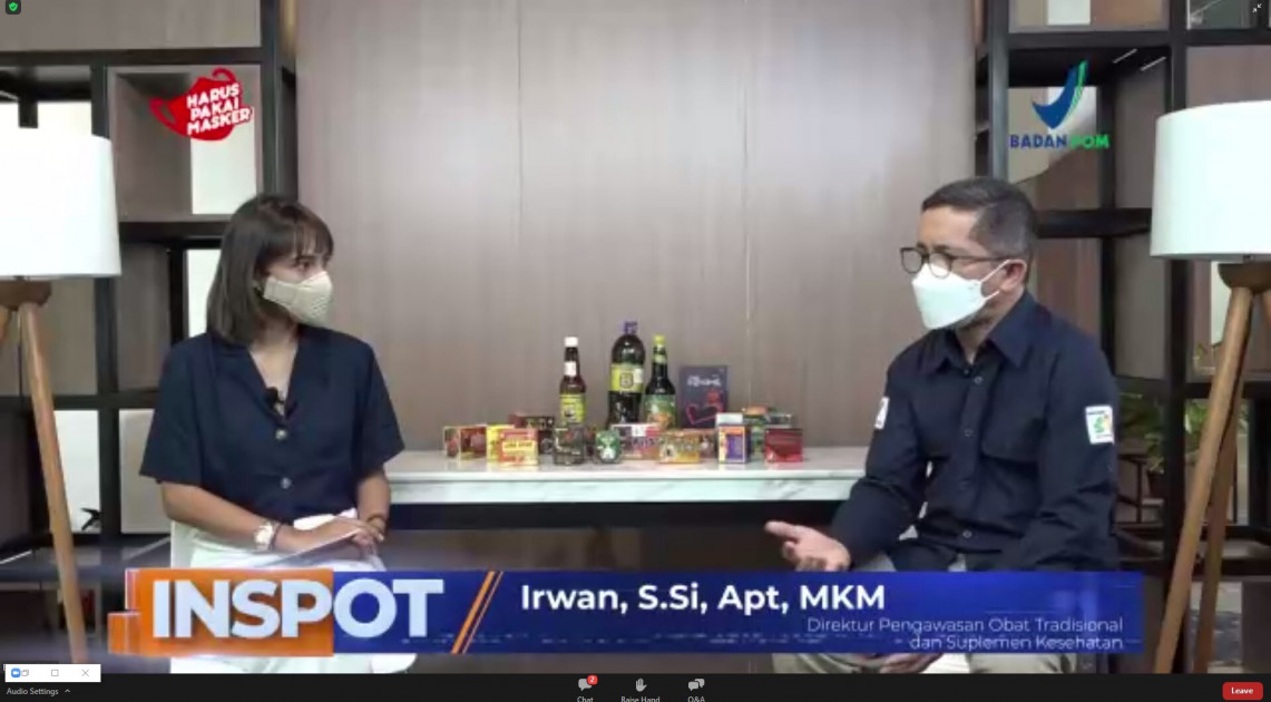 Sejalan dengan hal tersebut, Deputi Bidang Pengawasan Obat Tradisional, Suplemen Kesehatan, dan Kosmetik, Reri Indriani menegaskan kepada masyarakat untuk tidak gegabah dalam mengonsumsi obat tradisional. “Ingat, obat tradisional tidak memberikan hasil yang instan. Ini hal yang harus disadari oleh masyarakat”, ungkapnya. Pada webinar ini narasumber Badan POM yang juga hadir memberikan edukasi yaitu Direktur Pengawasan Obat Tradisional dan Suplemen Kesehatan Badan POM, Irwan; Kepala Balai Besar POM di Bandung, Sukriadi Darma; dan Kepala Balai Besar POM di Surabaya, Rustyawati.