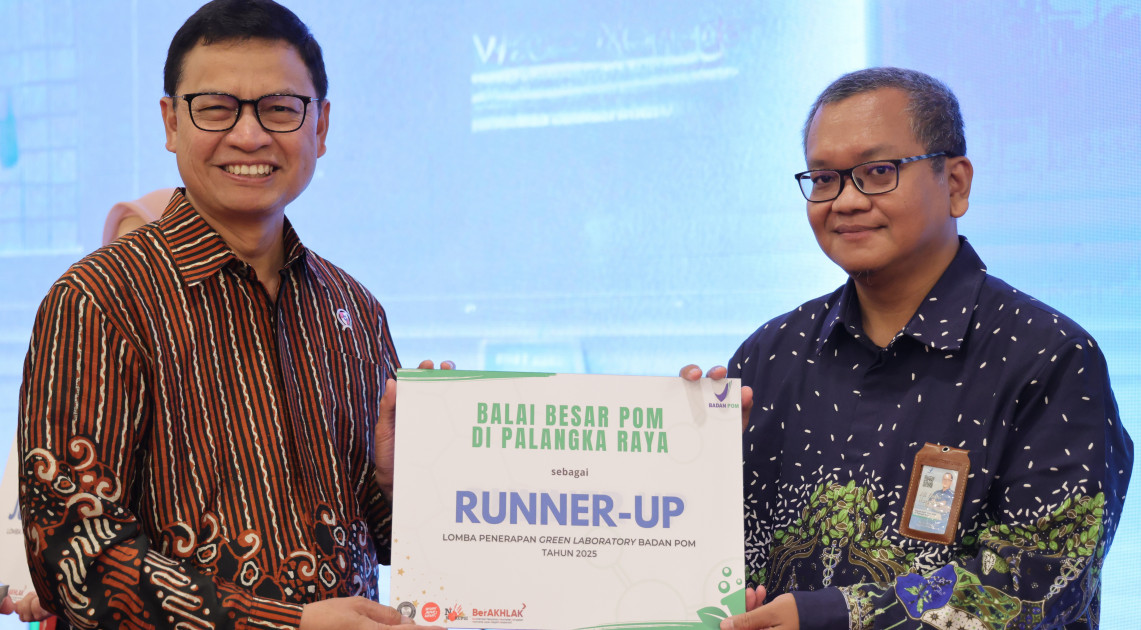 Jakarta – Kepala BPOM Taruna Ikrar memberikan penghargaan kepada laboratorium di lingkungan unit pelaksana teknis (UPT) BPOM seluruh Indonesia yang dinilai telah menerapkan prinsip aspek green laboratory dalam operasionalnya. Penyerahan dilakukan pada momen Green Laboratory Forum and Awards BPOM yang diselenggarakan di Aula Gedung Bhinneka Tunggal Ika pada Kamis (26/6/2025).
