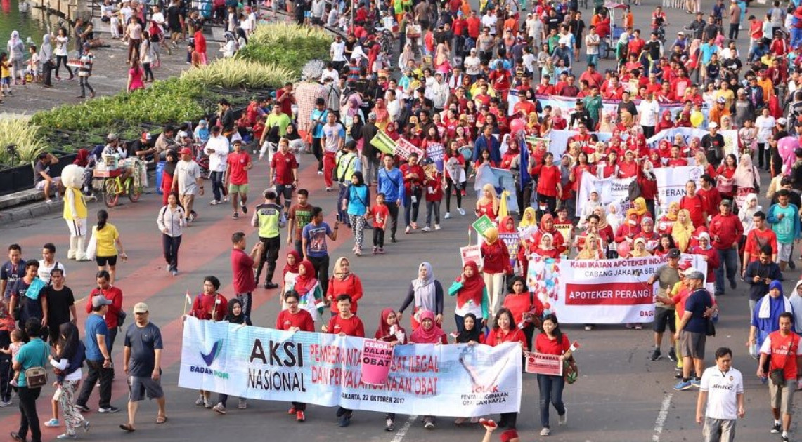 JAKARTA – Kondisi penyalahgunaan obat dan Napza di Indonesia beberapa tahun terakhir ini sudah sangat mengkhawatirkan. Oleh karena itu, masalah ini tidak dapat hanya ditangani oleh Badan POM RI sendiri, tetapi butuh sinergisme dari segenap komponen bangsa untuk berupaya mengatasi hal ini. Di area Car Free Day (CFD) Jakarta, Badan POM RI suarakan dan ajak masyarakat perang terhadap penyalahgunaan obat dan Napza, Minggu (22/10).