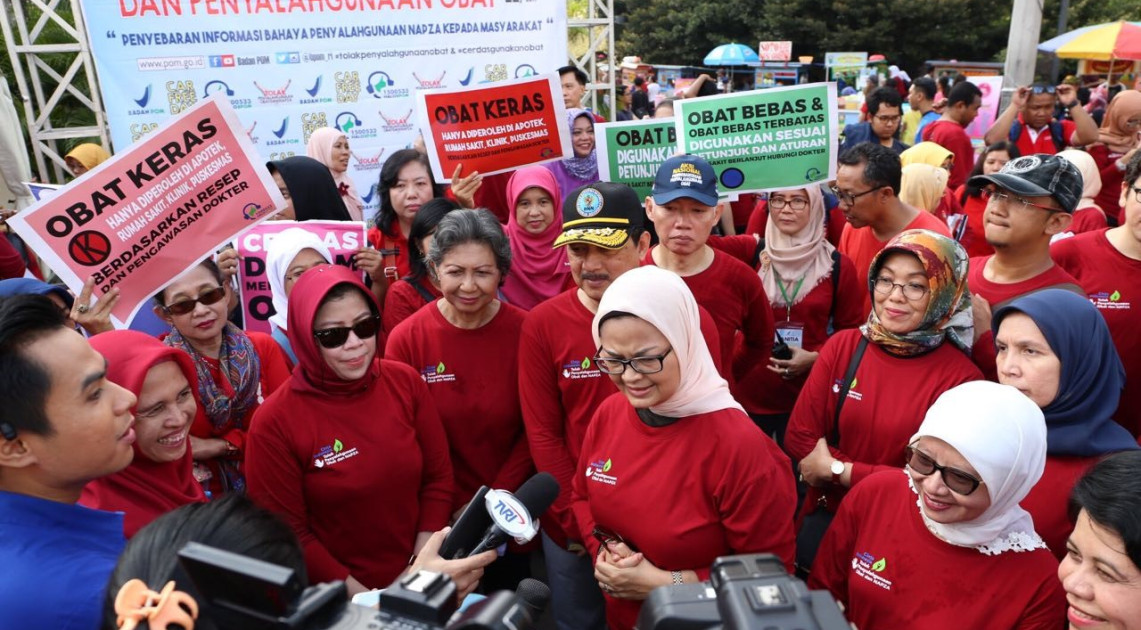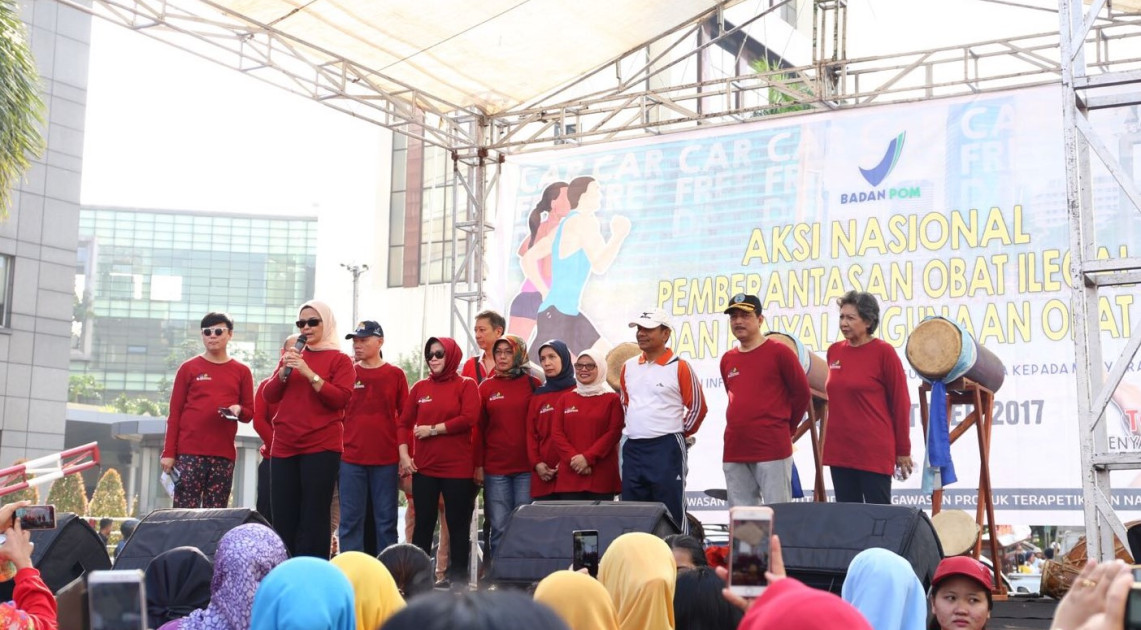 "Hari ini kita berkumpul di sini untuk menyatakan komitmen bahwa kita perang terhadap penyalahgunaan obat dan napza. Dalam hal ini, ada tiga aspek yang ditekankan. Pertama adalah melalui edukasi kepada masyarakat seperti yang kami lakukan hari ini. Kedua berupa pengawasan yang dilakukan tidak hanya oleh Badan POM RI, tapi juga didukung oleh unsur pemerintahan lainnya termasuk para pelaku usaha dan juga masyarakat sendiri. Dan yang ketiga adalah melakukan penindakan hukum untuk memastikan pelaku kejahatan penyalahgunaan obat mendapatkan efek jera dari hukuman yang dijatuhkan", jelas Kepala Badan POM RI, Penny K. Lukito saat memberi penjelasan di tengah-tengah kerumunan masyarakat pengunjung area CFD.
