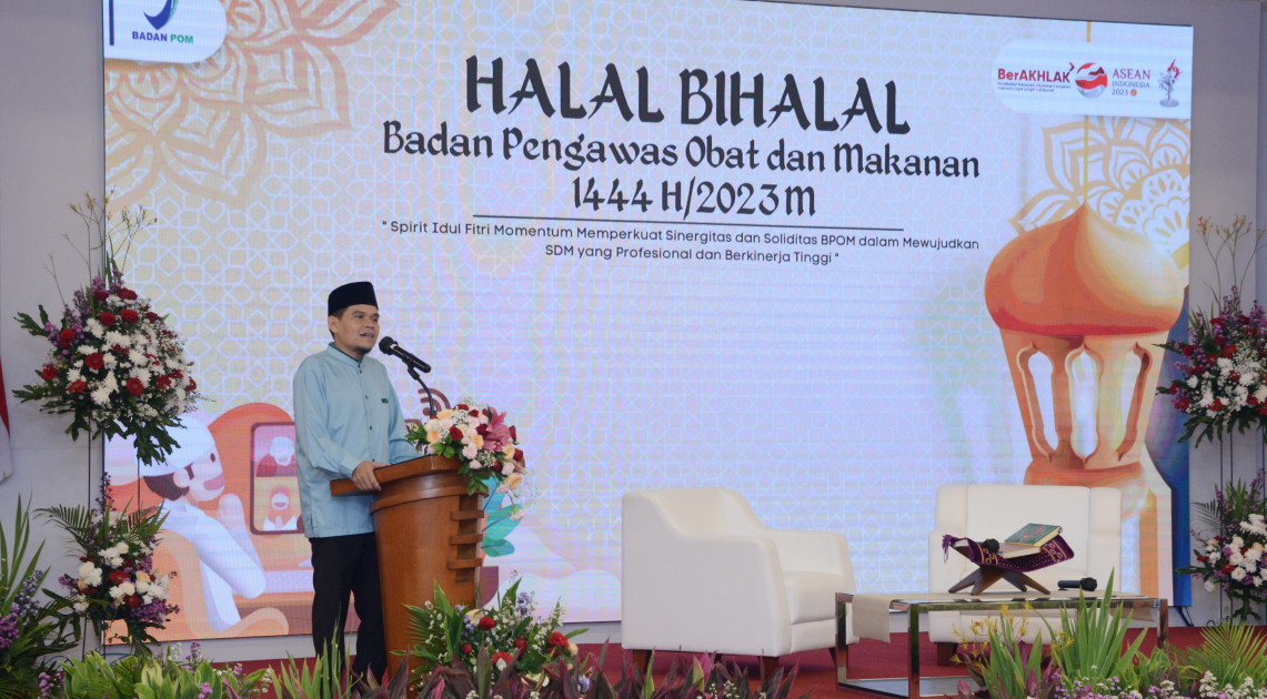 Jakarta - Memasuki aktivitas di pekan pertama setelah libur Idulfitri 1444 Hijriah, BPOM menggelar halalbihalal yang diikuti oleh jajaran pegawai, termasuk purnabakti Kepala BPOM di Kantor BPOM pada Rabu (03/05/2023). Tidak hanya diselenggarakan secara offline, kegiatan ini juga disiarkan secara online untuk diikuti tamu undangan dari lintas sektor dan pegawai BPOM di seluruh Indonesia.