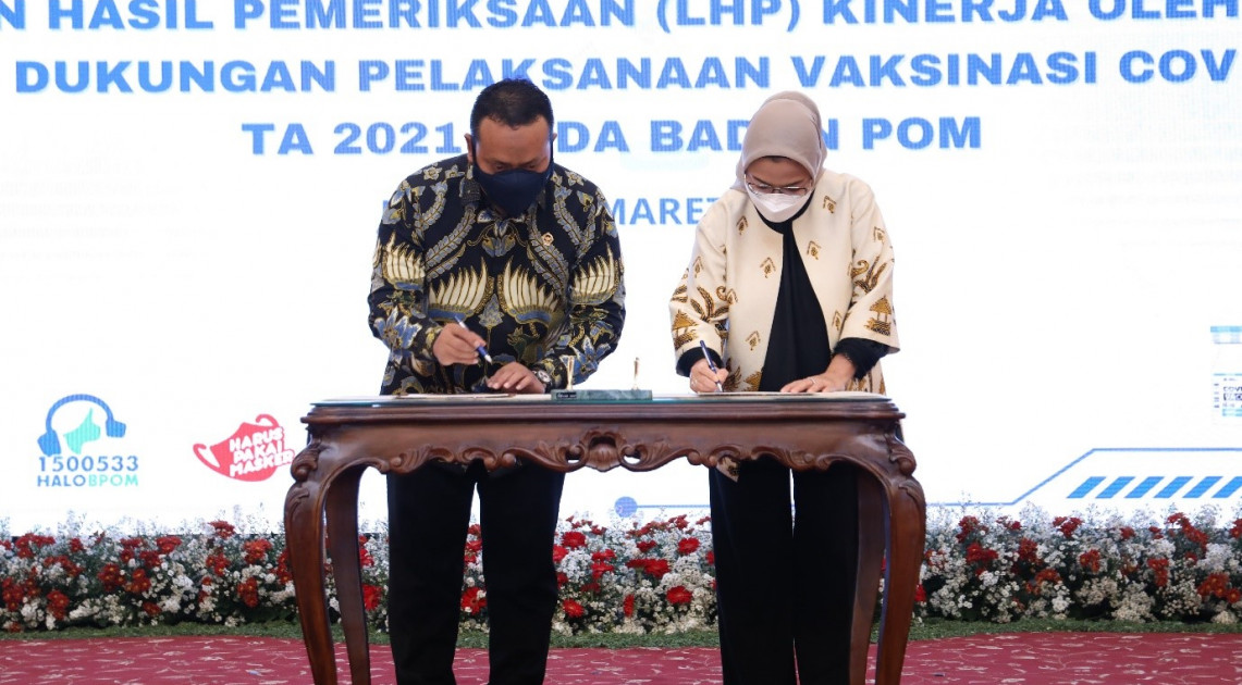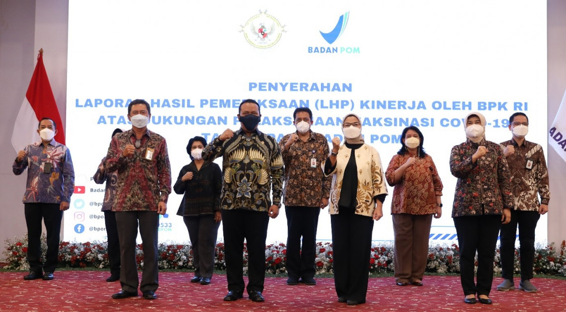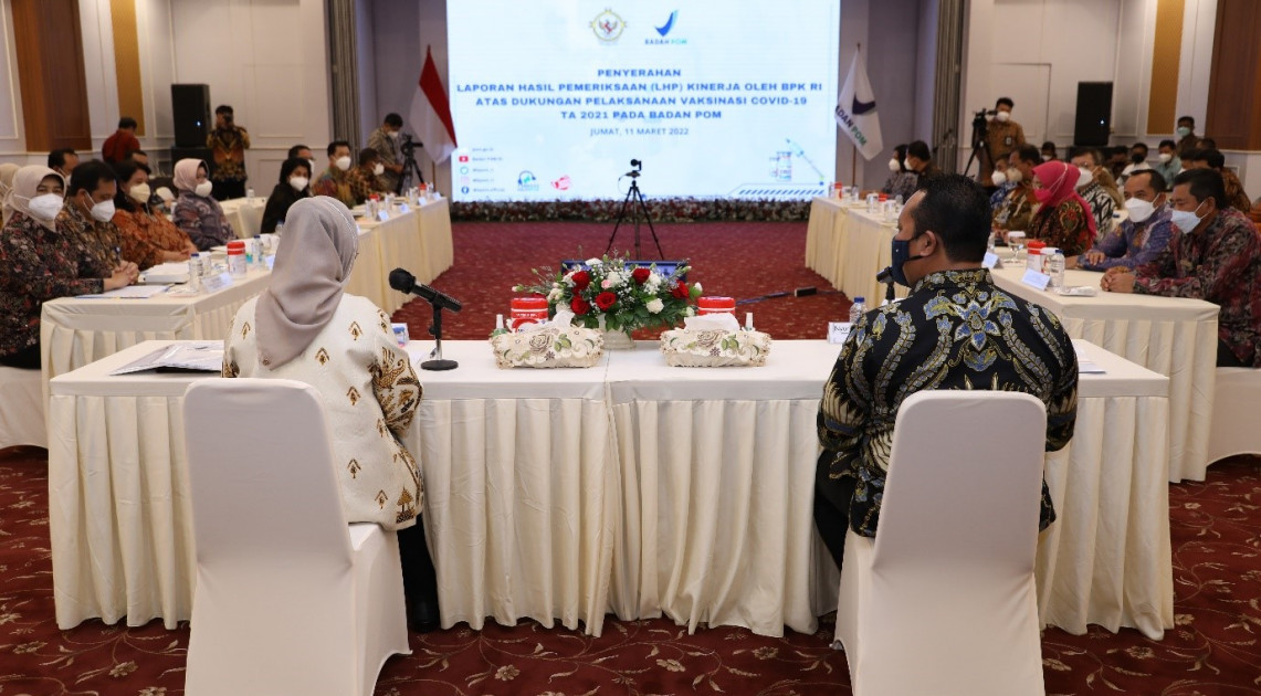 Anggota VI BPK RI, Nyoman Adhi Suryadnyana memaparkan bahwa Badan POM telah menunjukkan capaian dalam mendukung pelaksanaan vaksinasi COVID-19 antara lain dukungan ketersediaan vaksin COVID-19 melalui penerbitan Emergency Use Authorization (EUA) vaksin COVID-19, penerbitan Persetujuan Pelaksanaan Uji Klinik (PPUK), dan sertifikat Cara Pembuatan Obat Yang Baik (CPOB) kepada industri farmasi.