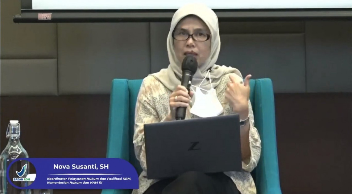 Materi berikutnya disampaikan oleh narasumber ketiga, Nova Susanti, yang memberikan penjelasan mendalam mengenai pentingnya perlindungan hak atas merek suatu produk, serta upaya yang dapat dilakukan pelaku usaha apabila terjadi pelanggaran Merek. Melengkapi pemaparan dari aspek hukum, Yurisa Martanti menambahkan penjelasan mengenai perjanjian kontrak kerja sama atas produk kosmetika dan kaitannya dengan pembuatan kosmetika kontrak.