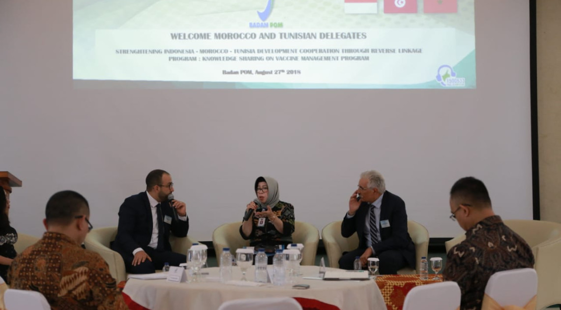 Jakarta - BPOM RI berkesempatan untuk bertemu dan berdialog dengan delegasi dari Maroko dan Tunisia dalam upaya mewujudkan pengembangan kemandirian produksi dan ketersediaan vaksin. Pertemuan ini terwujud melalui kegiatan Working Lunch and Knowledge Sharing dalam rangka Strengthening Indonesia-Morocco–Tunisia Development Cooperation Through Reverse Linkage yang diadakan di Kantor BPOM, Senin (27/8).