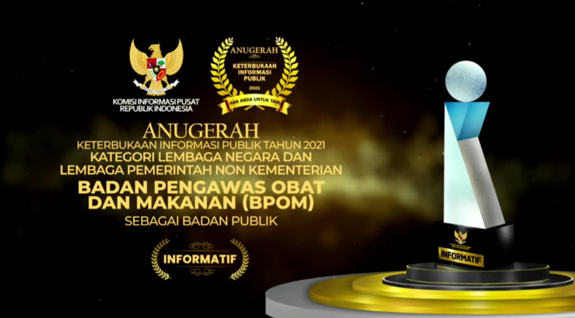 Jakarta - Badan POM masih mempertahankan predikat “Informatif” dengan nilai 95,43 berdasarkan hasil monitoring dan evaluasi (monev) keterbukaan informasi publik dari Komisi Informasi Pusat (KIP). Hasil ini diumumkan pada Penganugerahan Keterbukaan Informasi Publik Tahun 2021, Selasa (26/10). Ini merupakan tahun kedua Badan POM memperoleh predikat tersebut setelah sebelumnya berhasil mencapai predikat yang sama di tahun 2020.