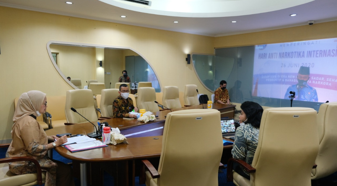 Jakarta - Hari Anti Narkotika Internasional (HANI) diperingati setiap tanggal 26 Juni. Namun peringatan kali ini berbeda, karena Indonesia dan seluruh negara di dunia masih dilanda pandemi COVID-19. Di Indonesia, acara puncak peringatan HANI tahun 2020 dilaksanakan secara virtual dan disiarkan secara langsung oleh media elektronik dan live streaming media sosial Badan Narkotika Nasional (BNN), Jumat (26/06). Acara puncak peringatan tersebut diikuti oleh seluruh kementerian/lembaga, termasuk Badan POM.