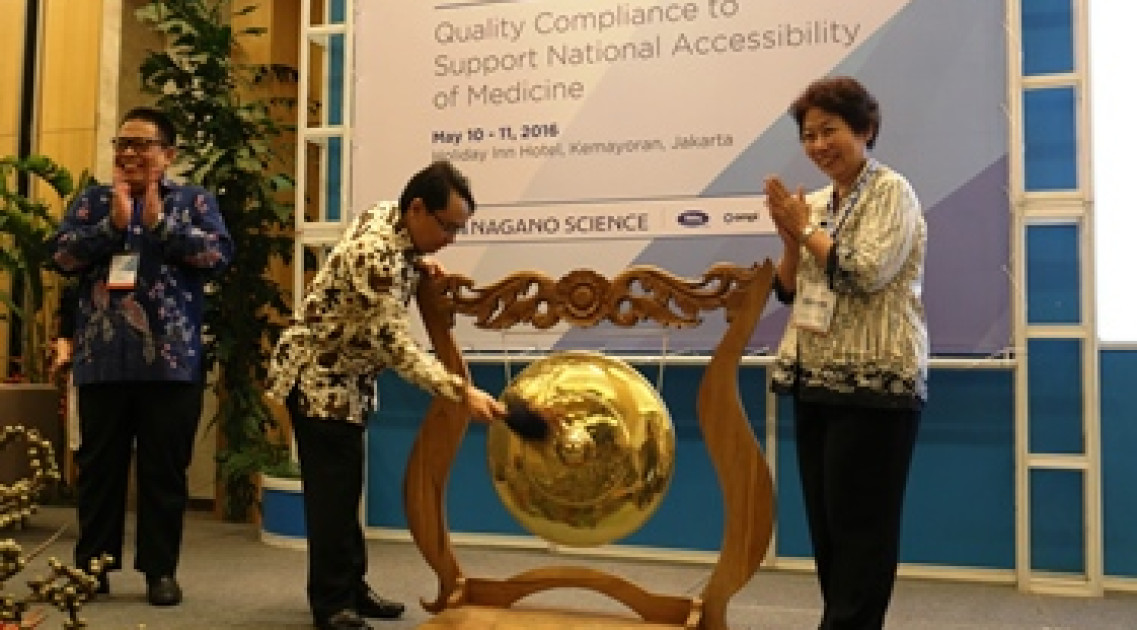 Setelah memberikan sambutan Kepala BPOM berkesempatan membuka annual conference dengan pemukulan gong dilanjutkan presentasi Deputi Bidang Pengawasan Produk Terapeutik dan NAPZA, T. Bahdar J. Hamid dengan judul “Importance of GMP, Compliance of API, Manufacturer in Building, Safety, Efficacy, and Quality of Medicine”. HM-Grace