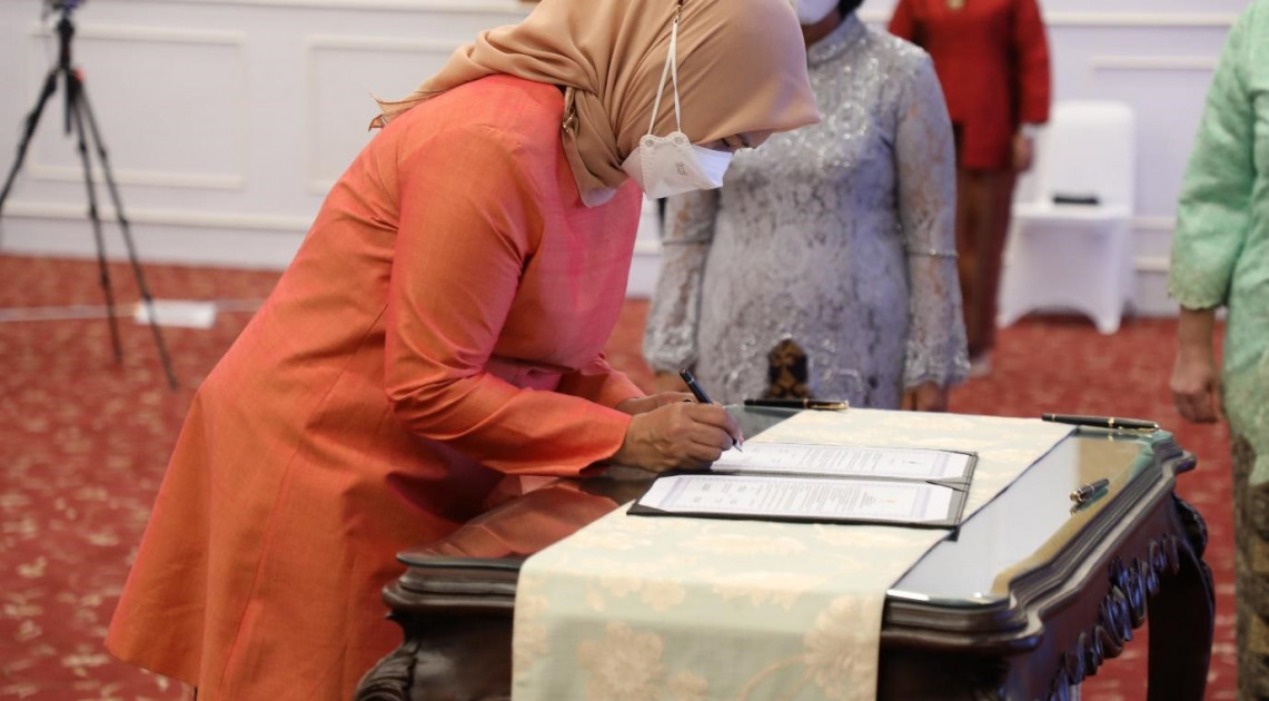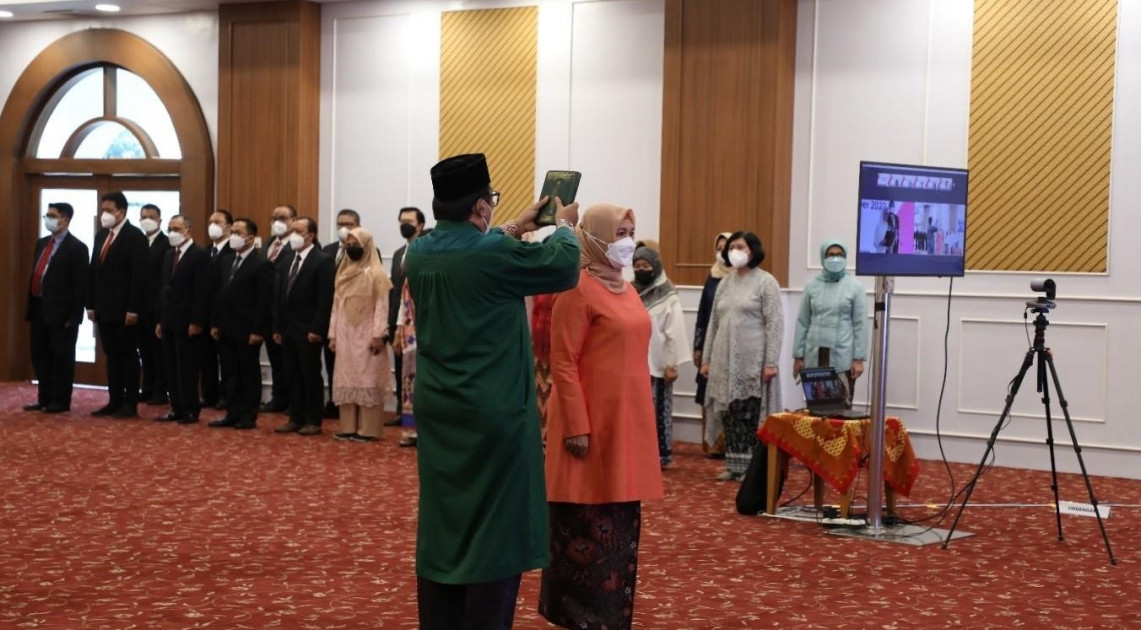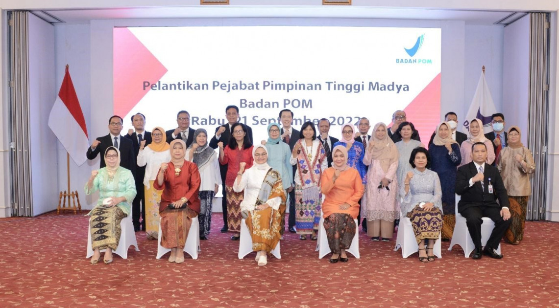 Jakarta - Kepala BPOM RI, Penny K. Lukito melantik Pejabat Tinggi Madya di lingkungan BPOM, Rabu (21/09/2022). Pejabat Tinggi Madya yang dilantik pada kesempatan ini adalah Rita Mahyona sebagai Sekretaris Utama BPOM. Pelantikan ini dihadiri dan disaksikan langsung oleh Pejabat Tinggi Madya lainnya dan Pejabat Tinggi Pratama di lingkungan BPOM.