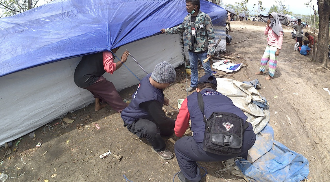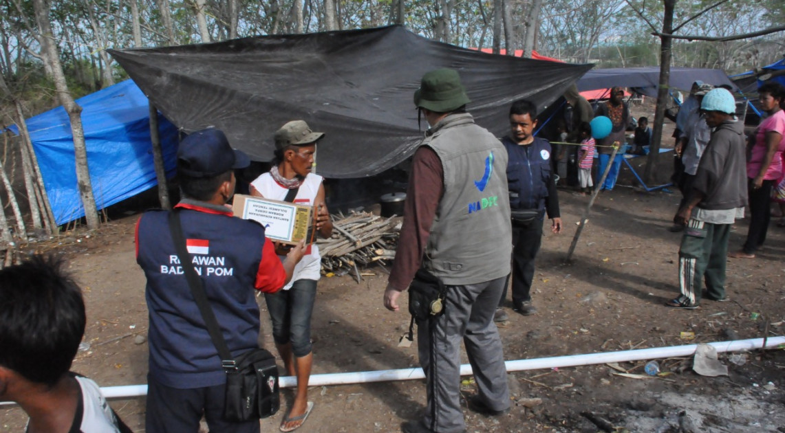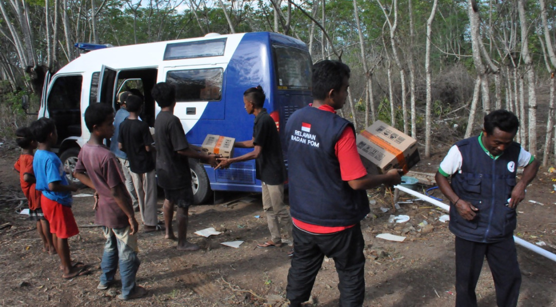 Relawan BPOM membentuk tim - tim kecil yang masing masing tim bertugas menyalurkan bantuan berupa minuman, makanan, dan obat ke lokasi pengungsian. Selain menyalurkan, tim relawan juga mencari pengungsi yang belum mendapatkan bantuan dari pemerintah maupun dari swasta sampai ke daerah pelosok dan terpencil. Jalan putus, dan masuk aliran sungai yang mengering menjadi makanan sehari-hari para relawan untuk mengantar bantuan kemanusiaan.