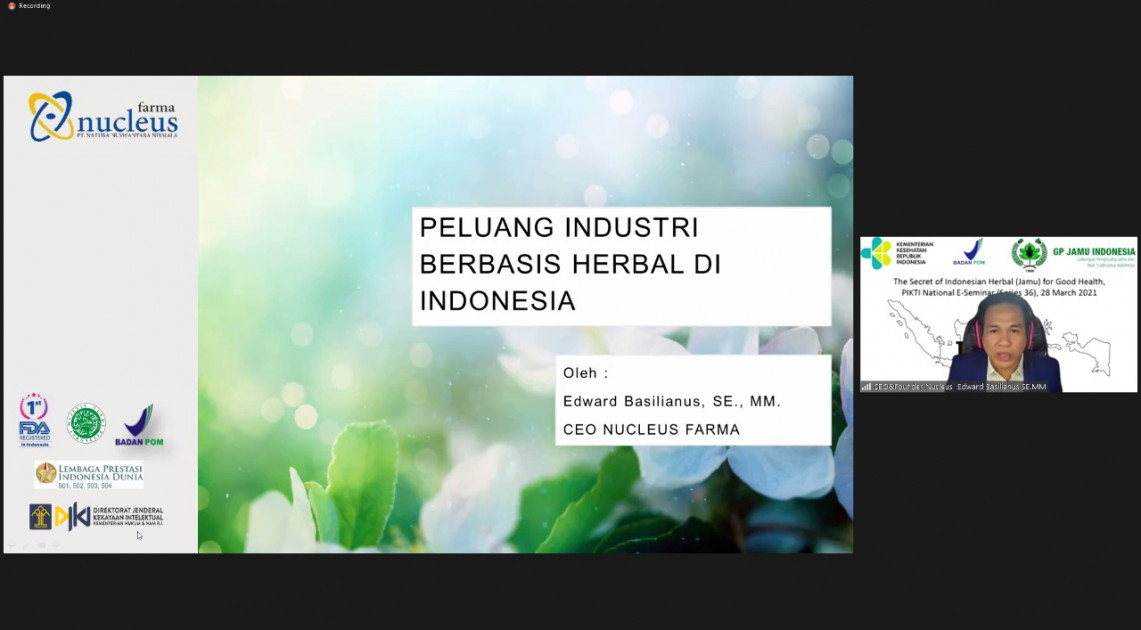 Seminar yang digelar secara virtual ini turut menghadirkan Ketua Umum PIKTI, Ekawahyu Kasih dan Ketua Umum Gabungan Pengusaha Jamu (GP Jamu) Indonesia, Dwi Ranny Pertiwi Zarman yang memberikan sambutan di awal acara. Narasumber yang dihadirkan, antara lain Rachmat Sarwono (Pendiri dan Direktur Utama PT. Industri Jamu Borobudur), Fenny Yunita (Perhimpunan Dokter Herbal Medik Indonesia), dan Edward Basilianus (CEO and Founder Nucleus Farma Archives).