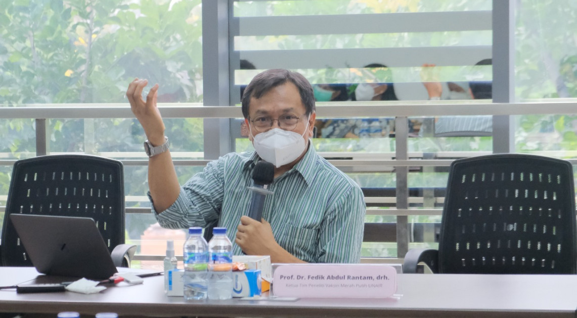 Dalam pertemuan tersebut, ketua tim peneliti Vaksin Merah Putih UNAIR, Prof. Dr. Fedik Abdul Rantam mengungkapkan alasan mengapa pada akhirnya menggunakan platform inactivated virus dalam penelitiannya. “Berdasarkan perkembangan penelitian kami di UNAIR sebenarnya terdiri dari beberapa platform, mulai dari peptide, adenovirus, kemudian ada inactivated virus dengan model tetes hidung, tetapi tidak begitu baik perkembangannya. Akhirnya kami memilih platform inactivated virus karena teknologi ini well-known. Jadi sudah tahu apa strateginya dan kemudahan lainnya,” papar Fedik Abdul Rantam.