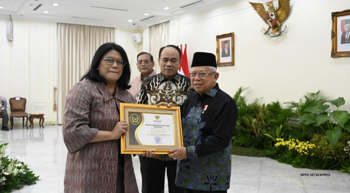 Jakarta – BPOM kembali menerima penghargaan sebagai badan publik dengan kualifikasi “Informatif” berdasarkan pelaksanaan Monitoring dan Evaluasi Keterbukaan Informasi Publik Tahun 2023 untuk Kategori Lembaga Negara dan Lembaga Pemerintah Non-Kementerian. Penghargaan diberikan secara langsung oleh Wakil Presiden RI, Ma’ruf Amin dan diterima oleh Pelaksana Tugas (Plt.) Kepala BPOM RI, L. Rizka Andalusia pada momen Anugerah Keterbukaan Informasi Publik Tahun 2023 di Istana Wakil Presiden RI, Selasa (19/12/2023).